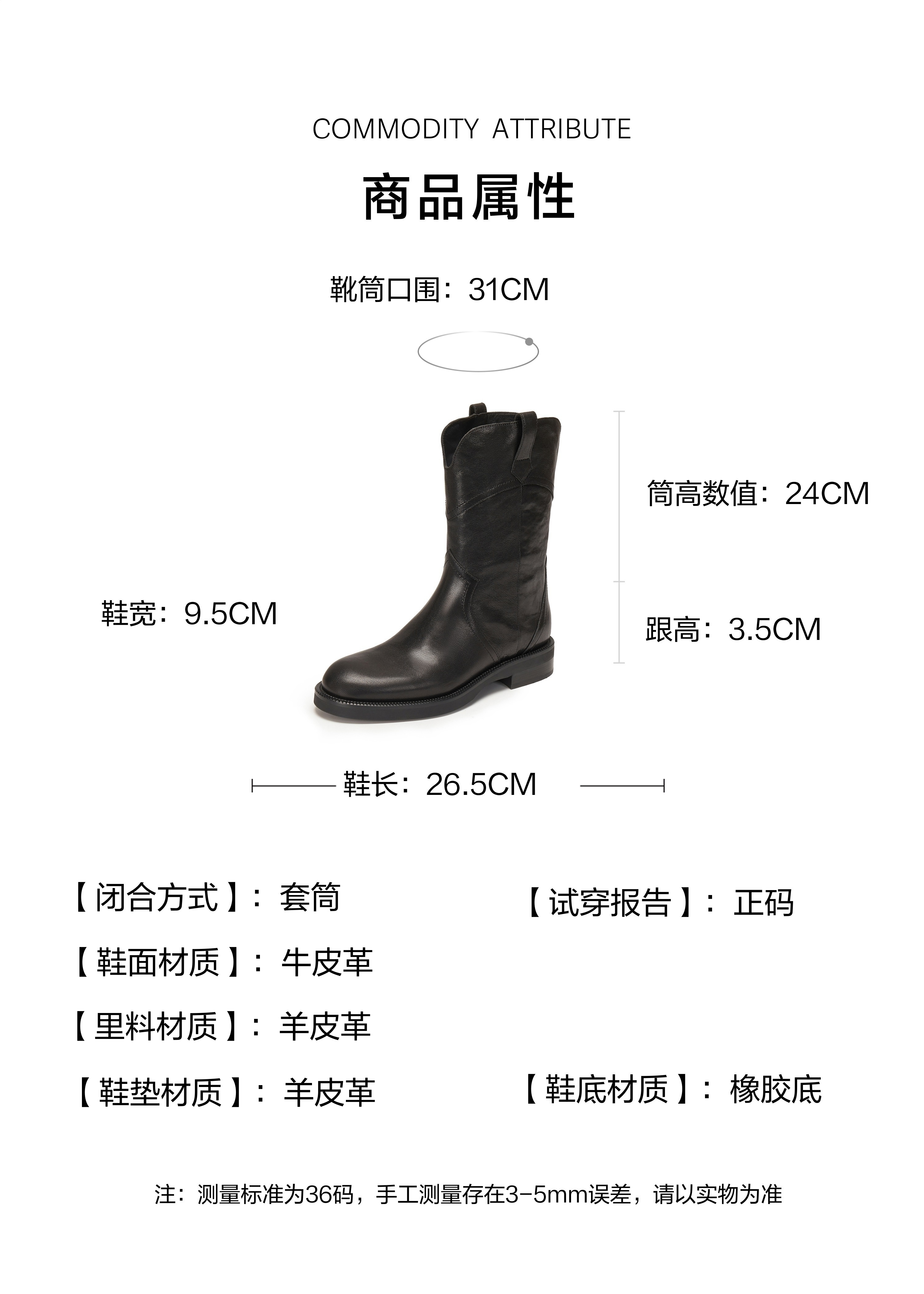 | 靴筒口围:31CM | 配跟:无 | 上市时间:2025年冬季 | 鞋类流行款式:西部靴 | 鞋头款式:圆头 |