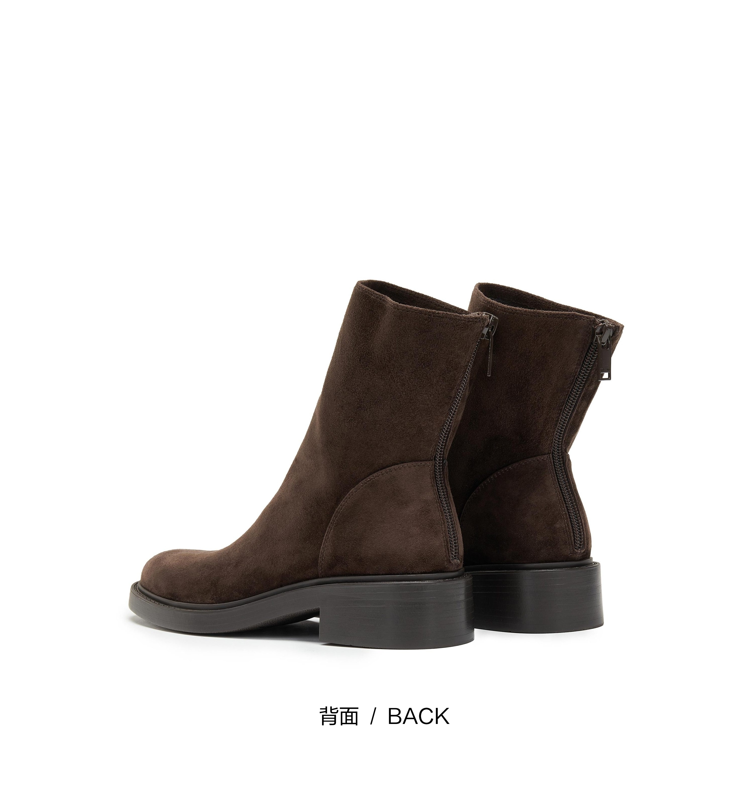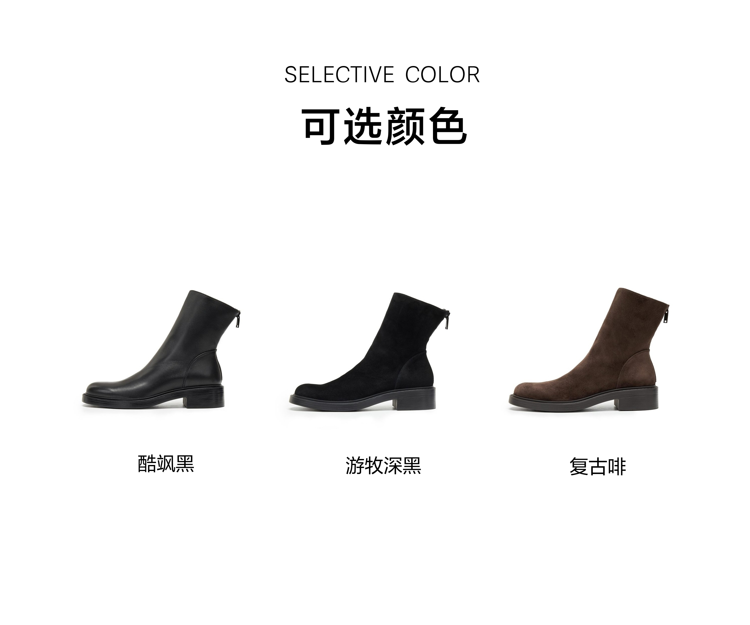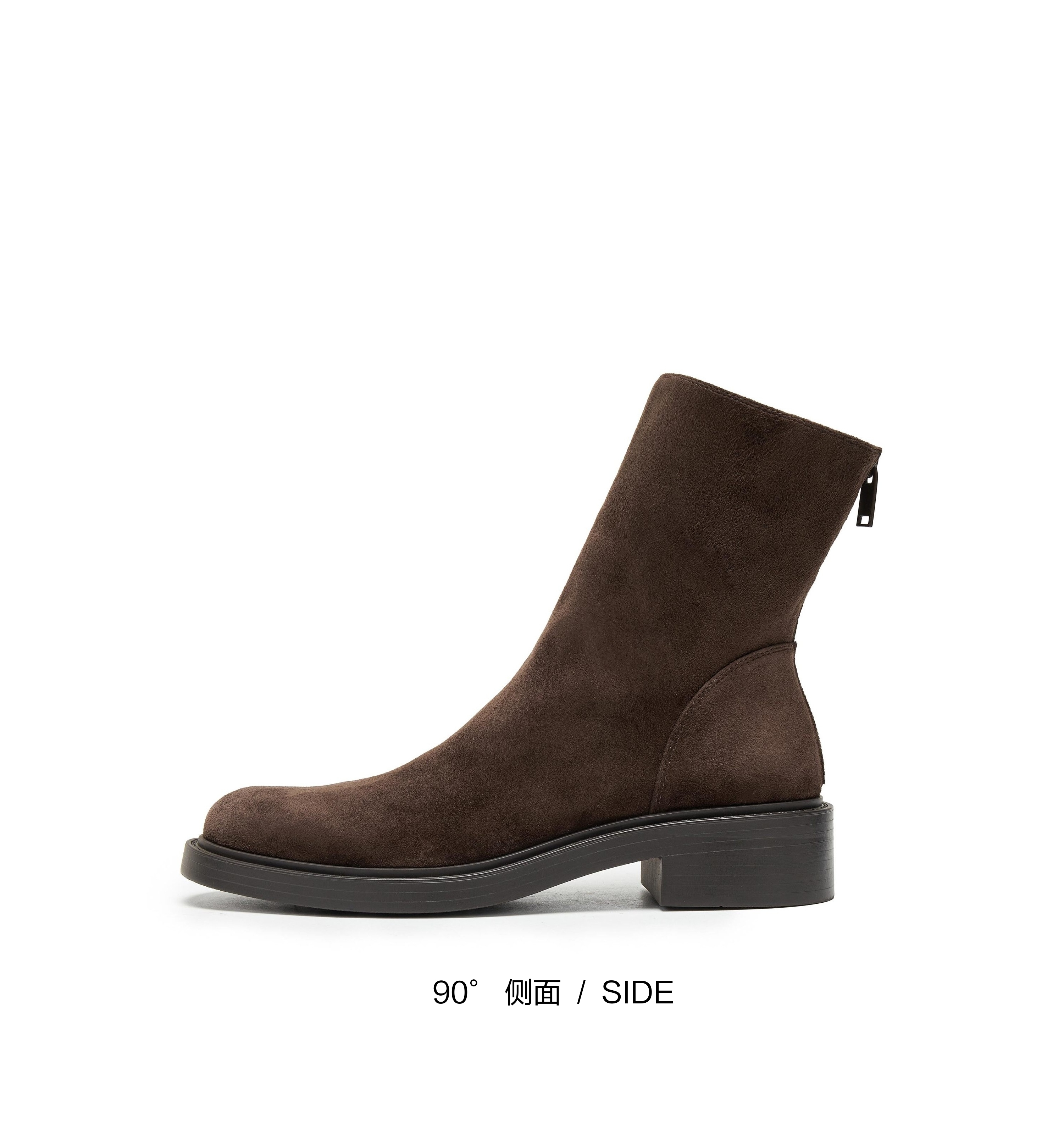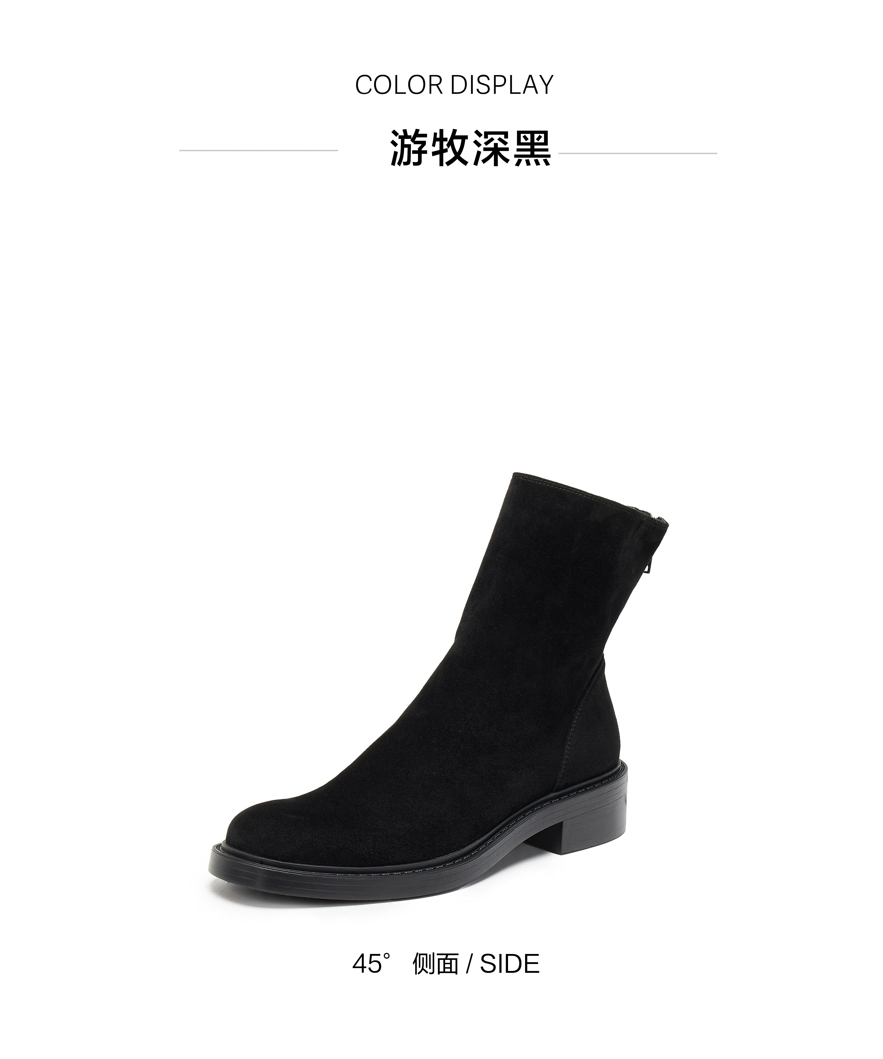 鞋底材质:橡胶底 靴筒内里材质:织物 内增高:无 鞋面材质:羊皮革 闭合方式:后拉链