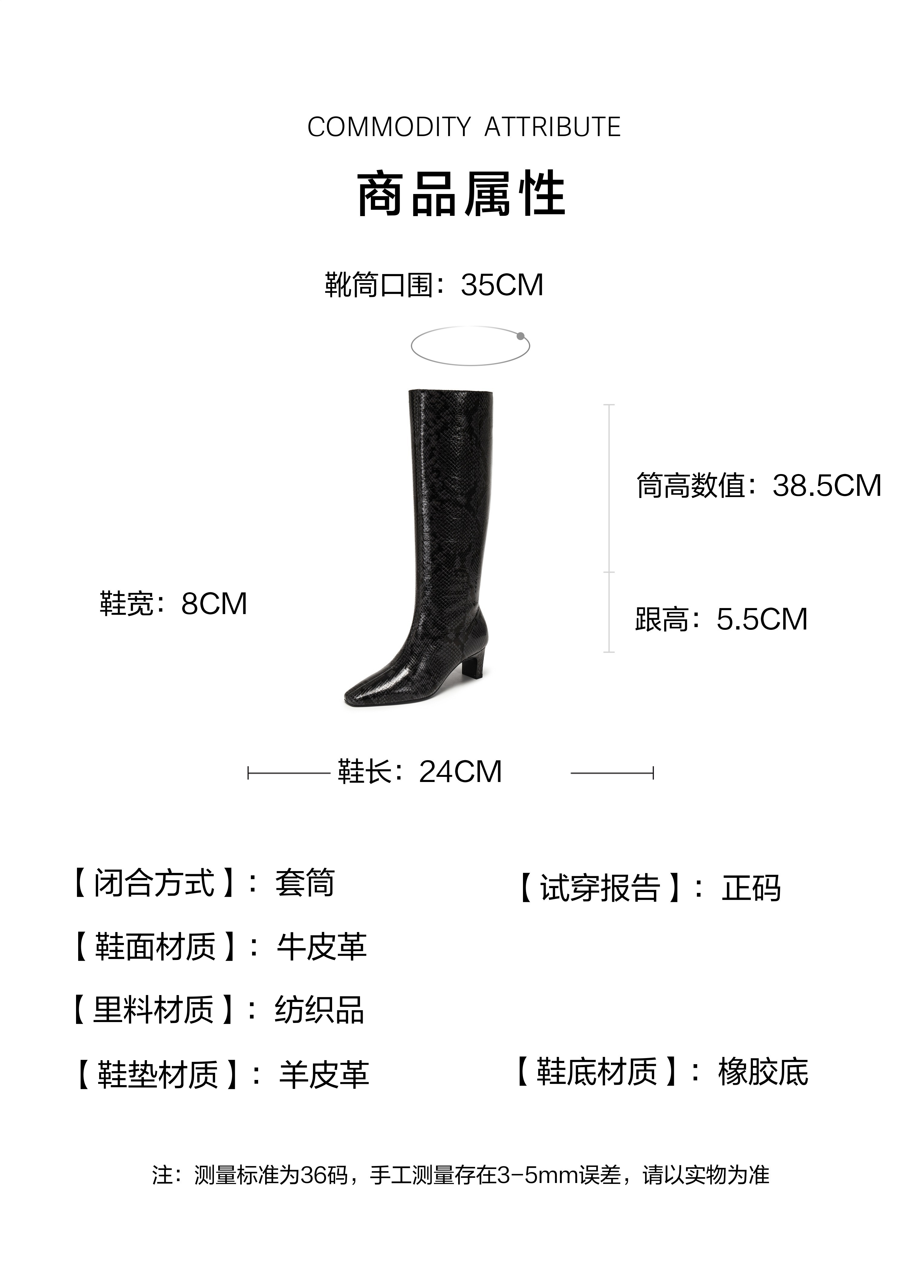 | 靴筒口围:35CM | 配跟:无 | 上市时间:2025年冬季 | 鞋类流行款式:时装靴 | 鞋头款式:方头 |