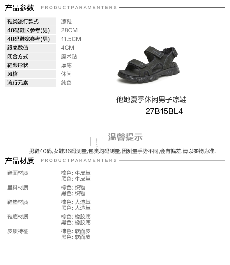 | 所在区域:电子商务 | 40码鞋宽参考(男):11.5CM | 风格分类:运动凉鞋 | 上市时间:2024年夏季 | 生产/经销/进口厂家:丽荣鞋业(深圳)有限公司 |