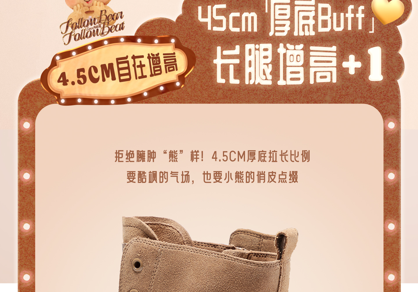 | 参考鞋宽(女):10.5CM | 风格:休闲 | 色系:杏色 | 跟高数值:4.5CM | 筒高数值:14.5CM |