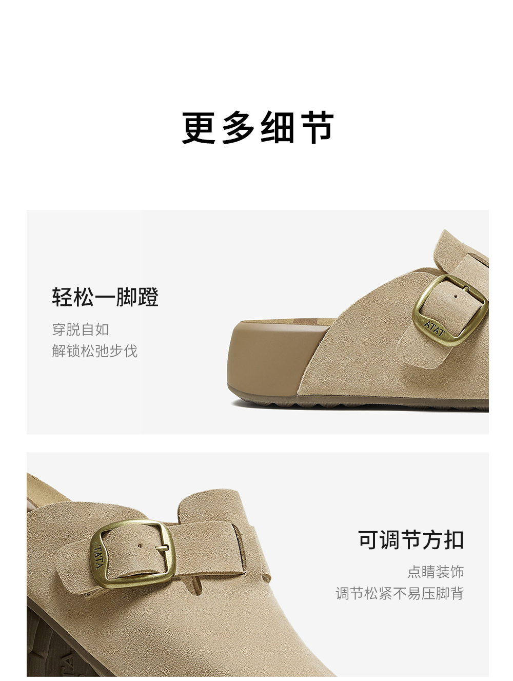 他她(Tata),品牌成立于2003年,致力为都市年轻人群提供时尚潮流、具有性价比的鞋履产品。十五年来“踏踏”的着地声,寓意都市白领元气满满的生活,如时尚“伴履”的TATA一直陪伴左右、伴随走出TATA的时尚步伐。2017年TATA美丽蜕变,TATA STAR元素的加入预示品牌将成为闪亮、前端的时尚鞋履品牌。