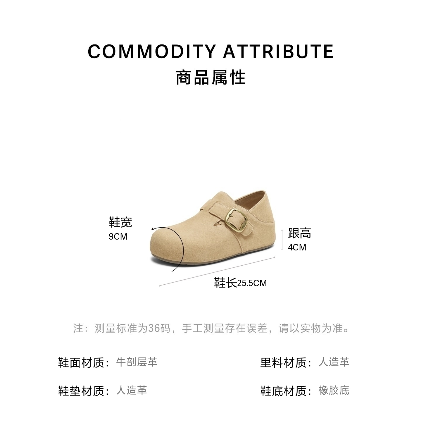 | 鞋跟形状:内增高 | 鞋面材质:牛剖层革 | 流行元素:纯色 | 参考鞋长(女):25.5CM | 参考鞋宽(女):9CM |