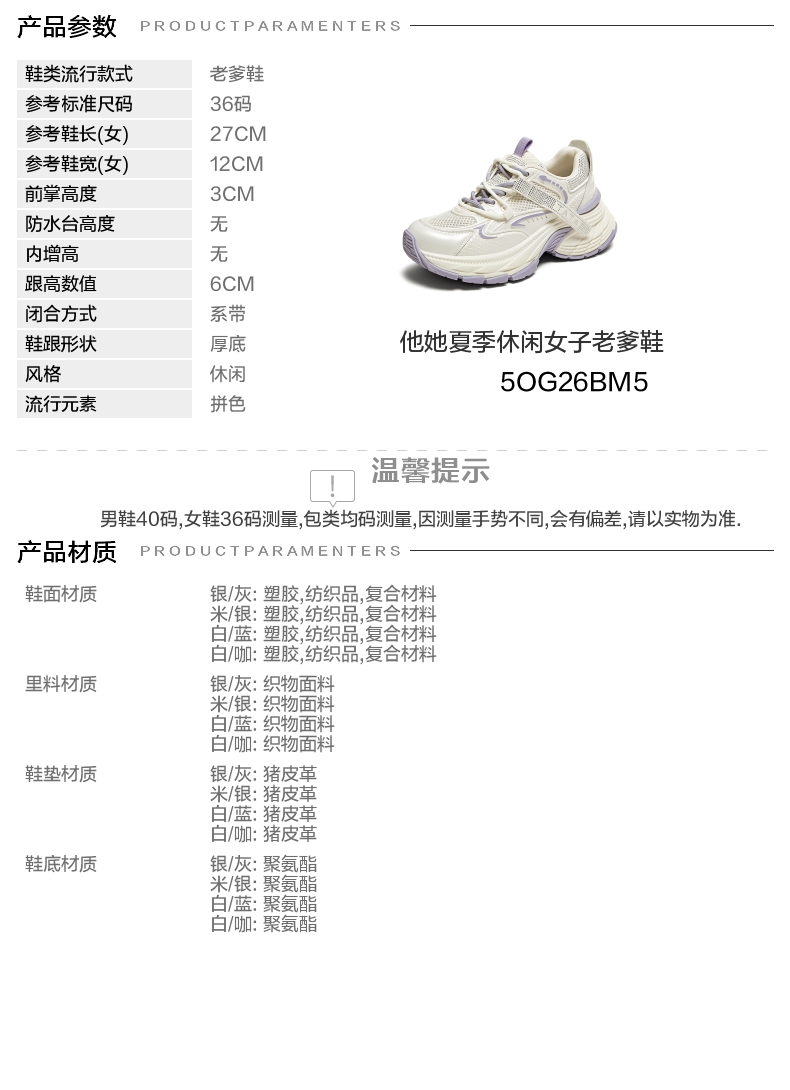 | 配跟:无 | 上市时间:2025年夏季 | 鞋类流行款式:老爹鞋 | 鞋头款式:圆头 | 鞋面图案:拼色 |