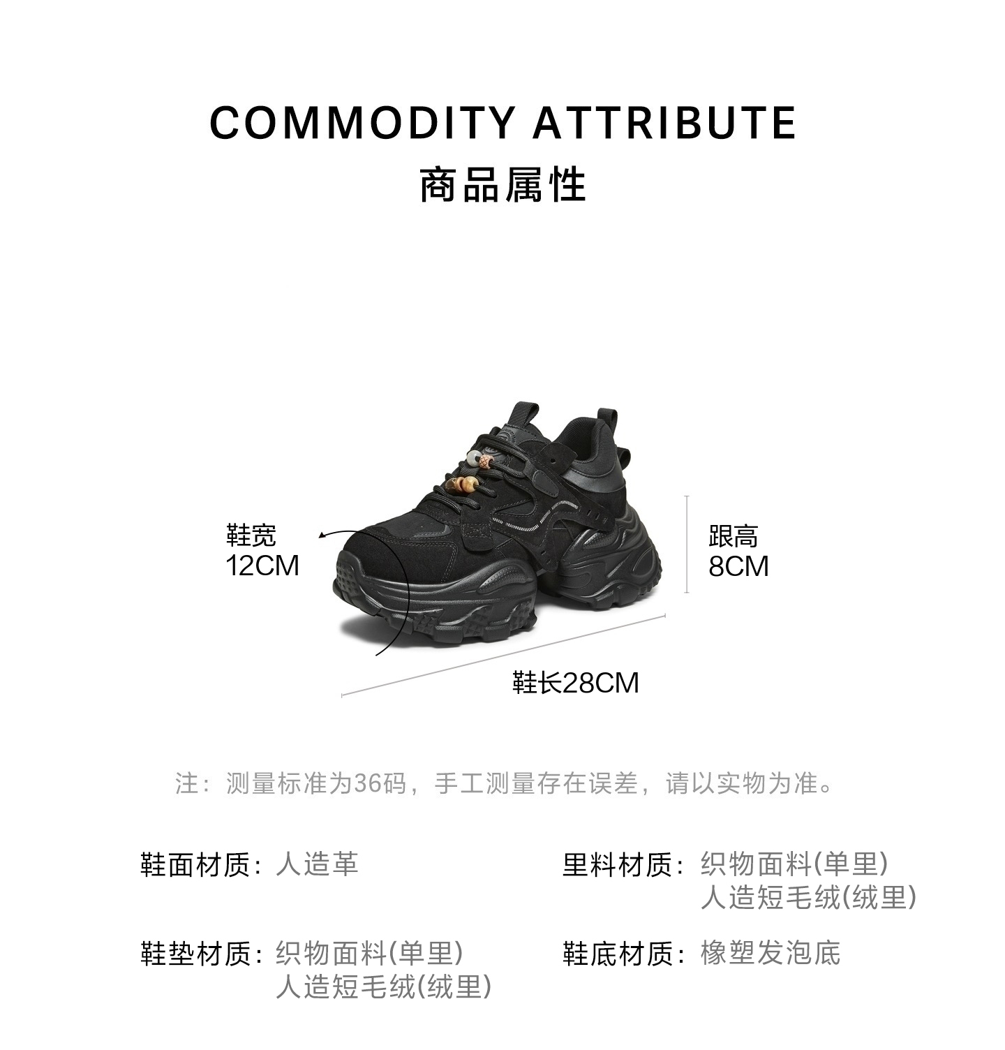 | 配跟:有 | 上市时间:2026年春季 | 鞋类流行款式:老爹鞋 | 鞋头款式:圆头 | 鞋面图案:纯色 |