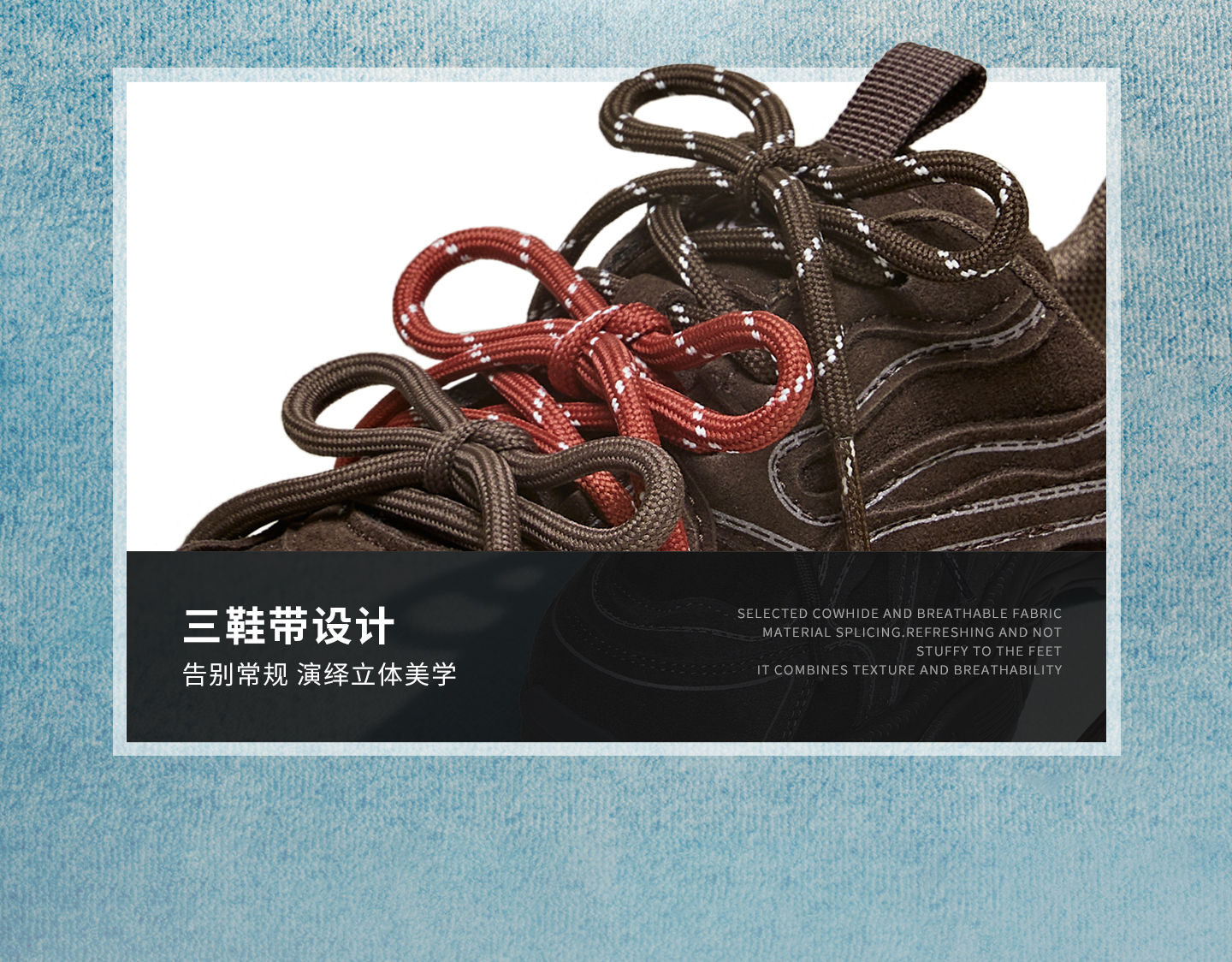 | 鞋帮:低帮 | 鞋底材质:吸膜底 | 内增高:无 | 鞋面材质:人造革纺织品 | 闭合方式:系带 |