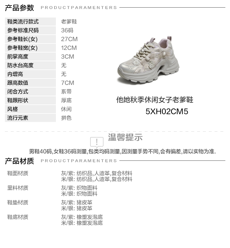 | 配跟:无 | 上市时间:2025年秋季 | 鞋类流行款式:老爹鞋 | 鞋头款式:圆头 | 鞋面图案:拼色 |