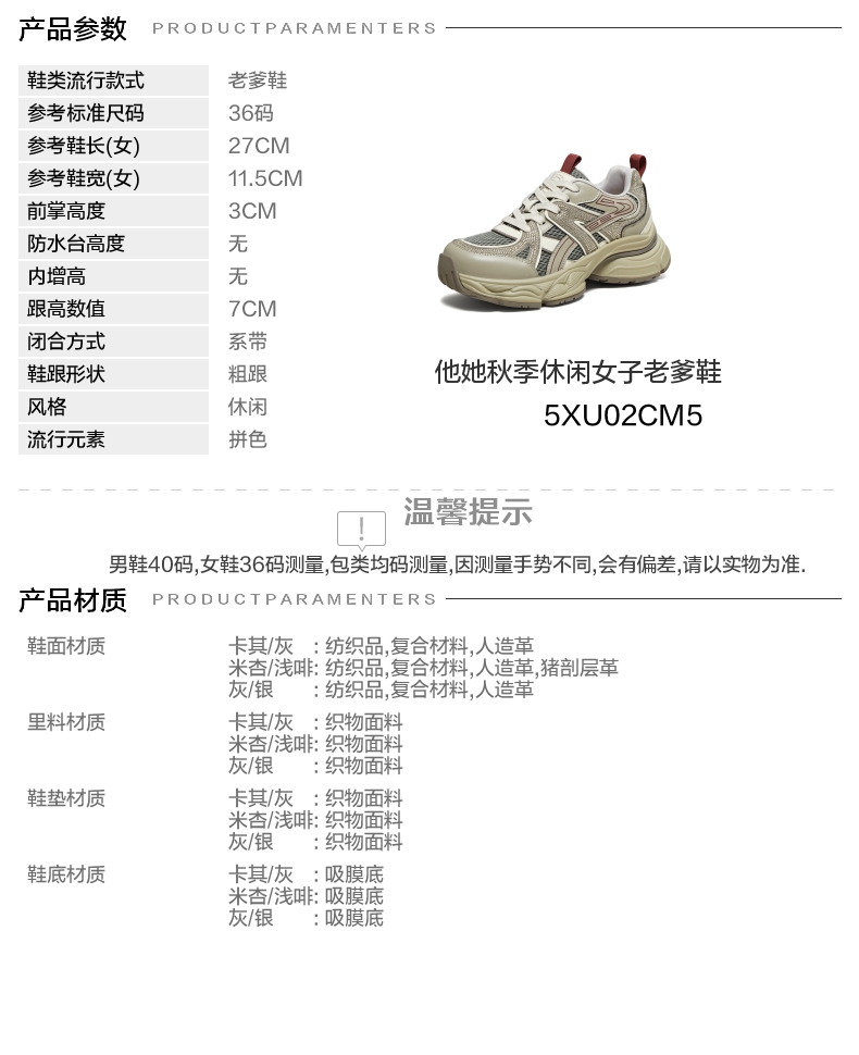 | 配跟:无 | 上市时间:2025年秋季 | 鞋类流行款式:老爹鞋 | 鞋头款式:圆头 | 鞋面图案:拼色 |