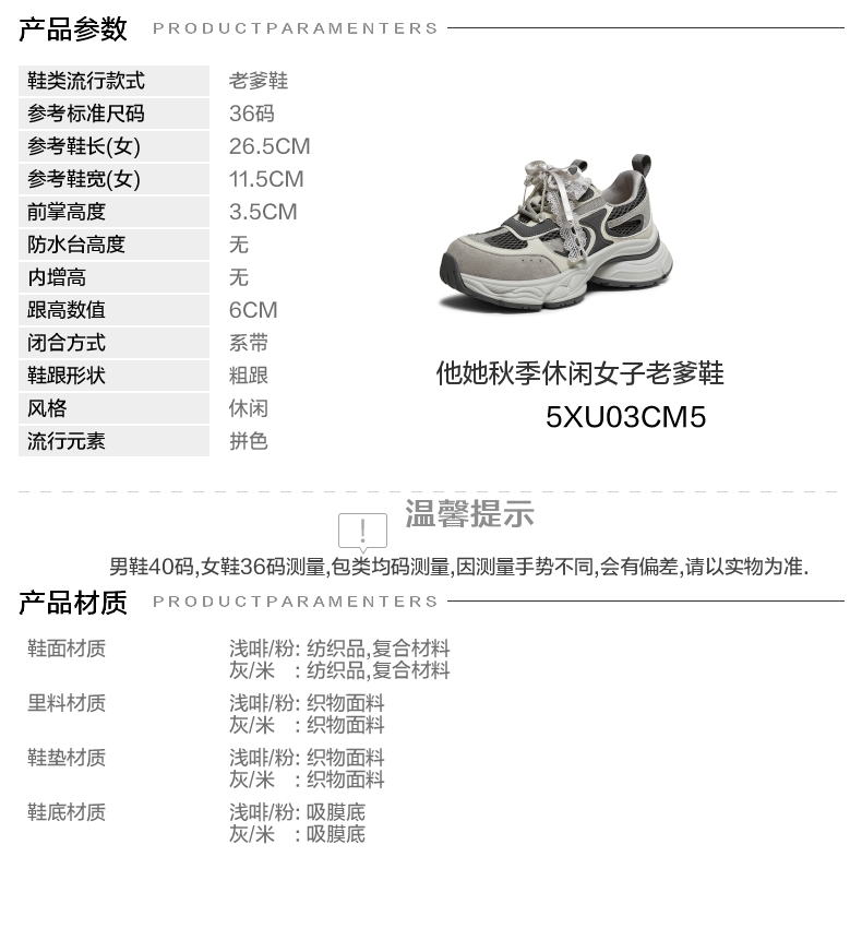 | 配跟:无 | 上市时间:2025年冬季 | 鞋类流行款式:老爹鞋 | 鞋头款式:圆头 | 鞋面图案:拼色 |