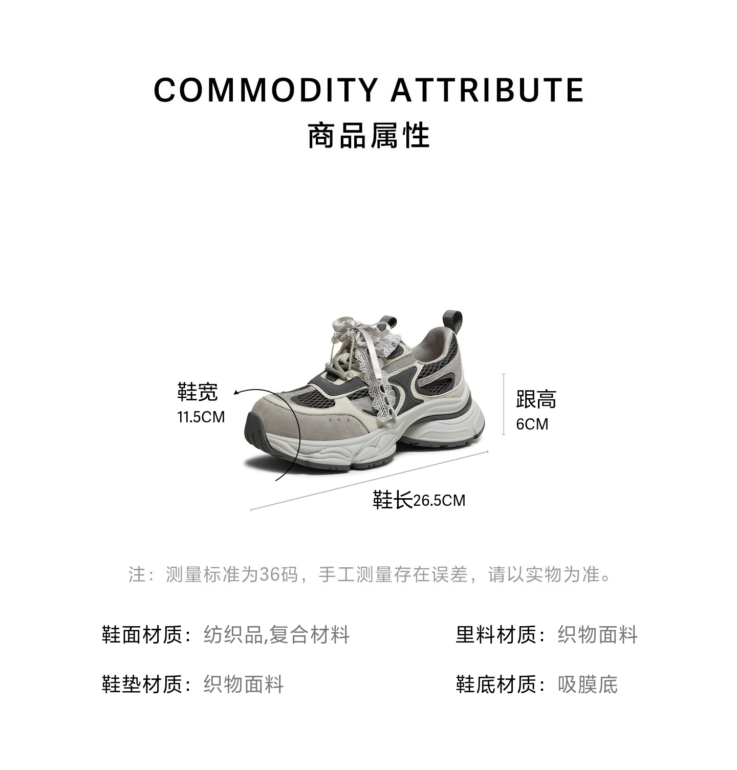| 鞋跟形状:粗跟 | 参考鞋长(女):26.5CM | 流行元素:拼色 | 参考鞋宽(女):11.5CM | 风格:休闲 |