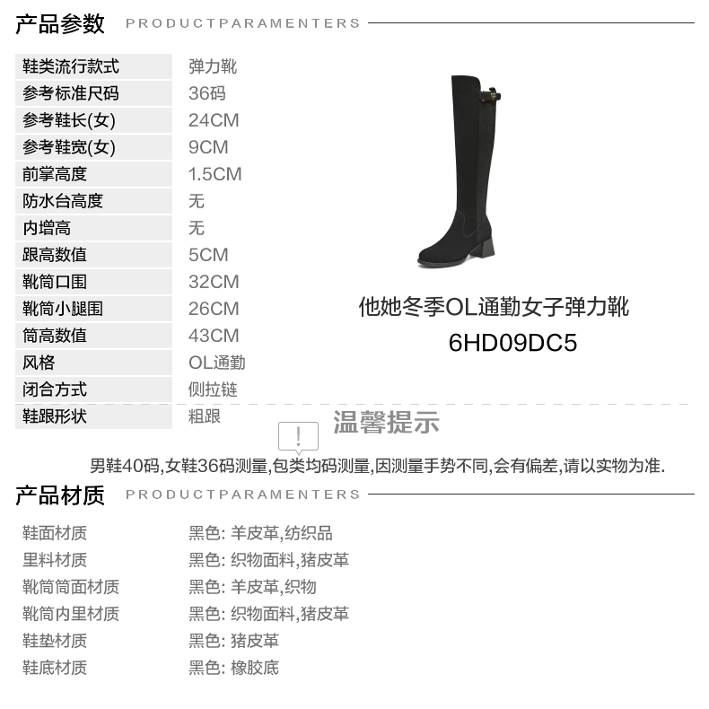 | 配跟:有 | 靴筒口围:32CM | 上市时间:2025年冬季 | 鞋类流行款式:弹力靴 | 鞋头款式:圆头 |