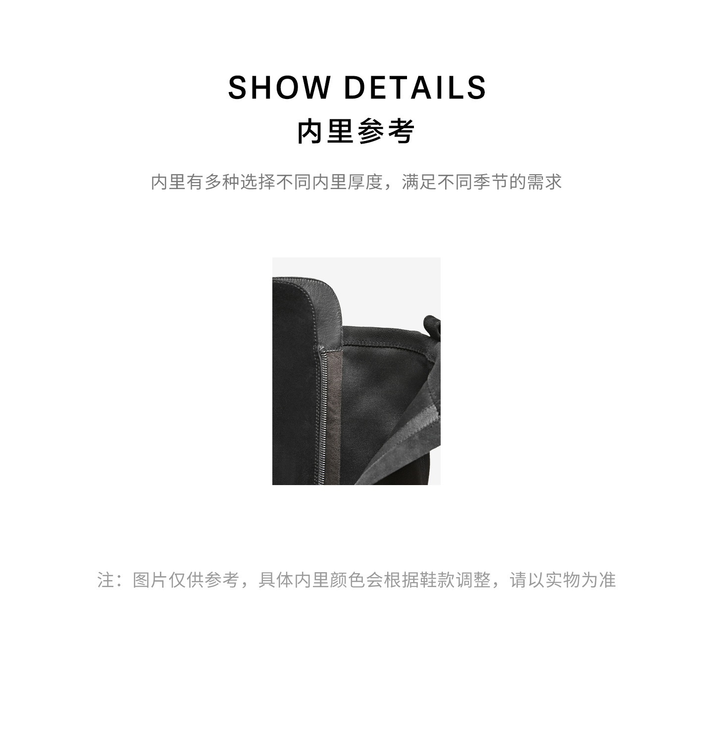 | 鞋底材质:橡胶底 | 靴筒内里材质:猪皮革织物面料 | 内增高:无 | 鞋面材质:纺织品羊皮革 | 闭合方式:侧拉链 |