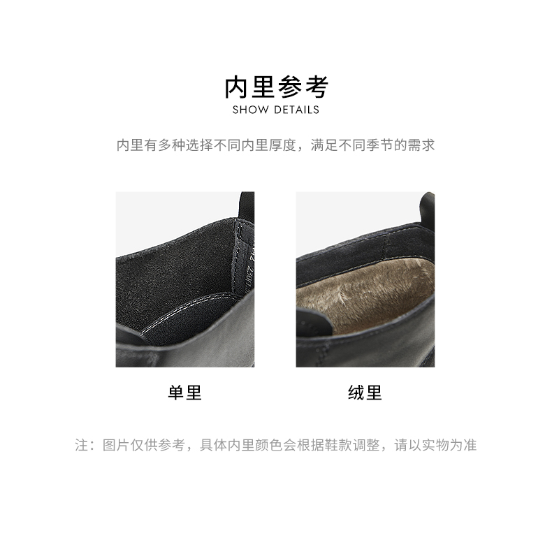 | 帮面材质:牛皮革 | 配跟:有 | 靴筒口围:24CM | 上市时间:2024年冬季 | 鞋类流行款式:短靴 |