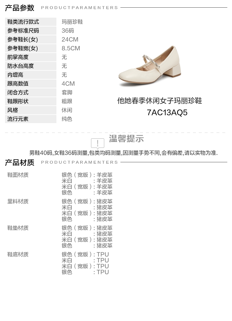| 上市时间:2025年春季 | 生产/经销/进口厂家:丽荣鞋业(深圳)有限公司 | 鞋类流行款式:玛丽珍鞋 | 鞋头款式:圆头 | 执行标准:皮鞋 QB/T1002-2015 |