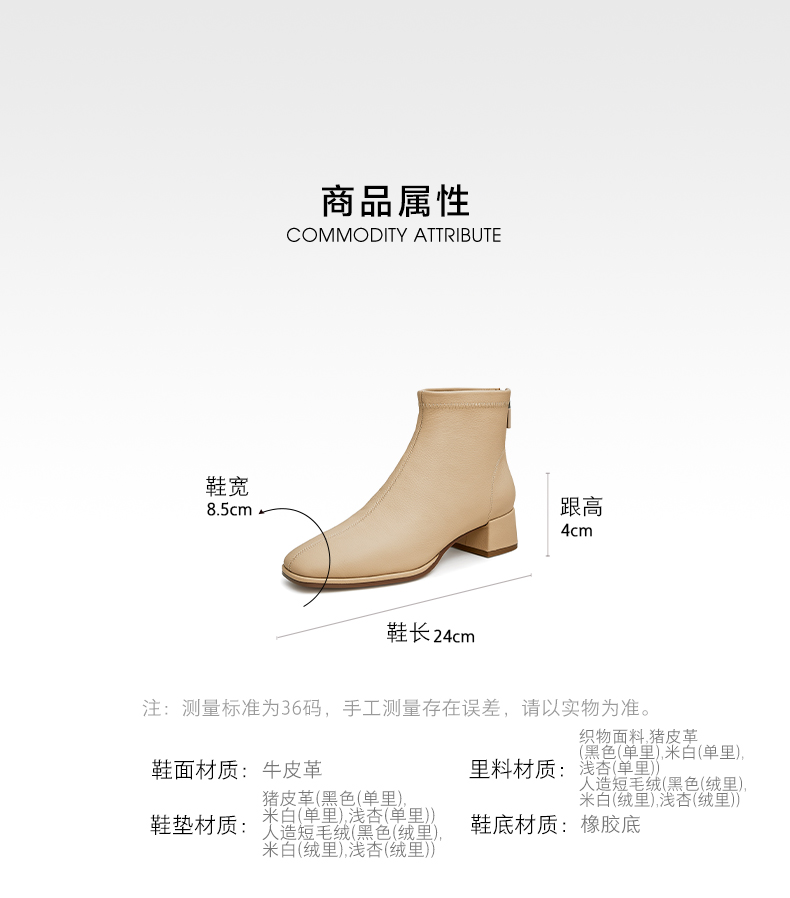 | 闭合方式:后拉链 | 筒高范围:短筒(10-20cm) | 所在区域:电子商务 | 配跟:有 | 帮面材质:牛皮 |