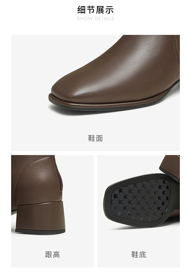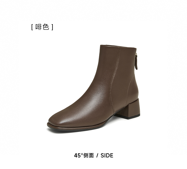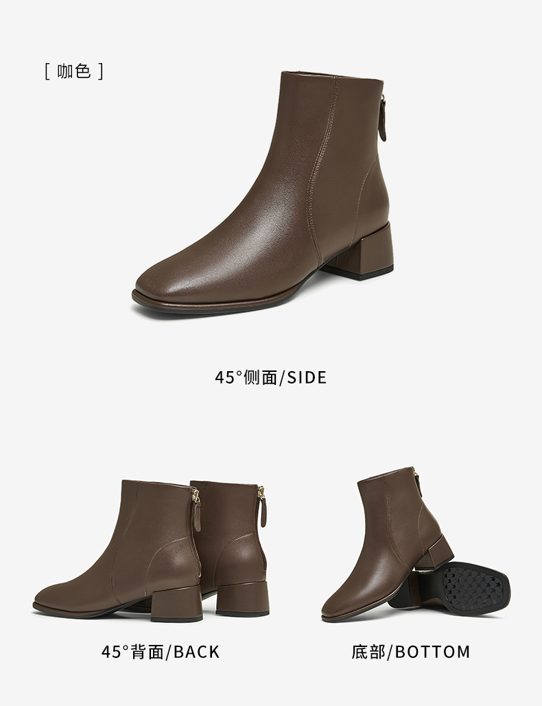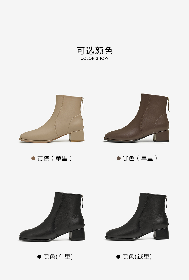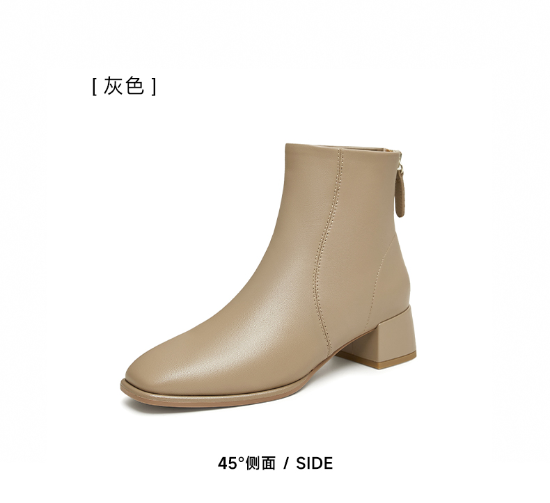 | 鞋底材质:TPU | 靴筒内里材质:织物面料 | 内增高:无 | 鞋面材质:羊皮革 | 闭合方式:后拉链 |