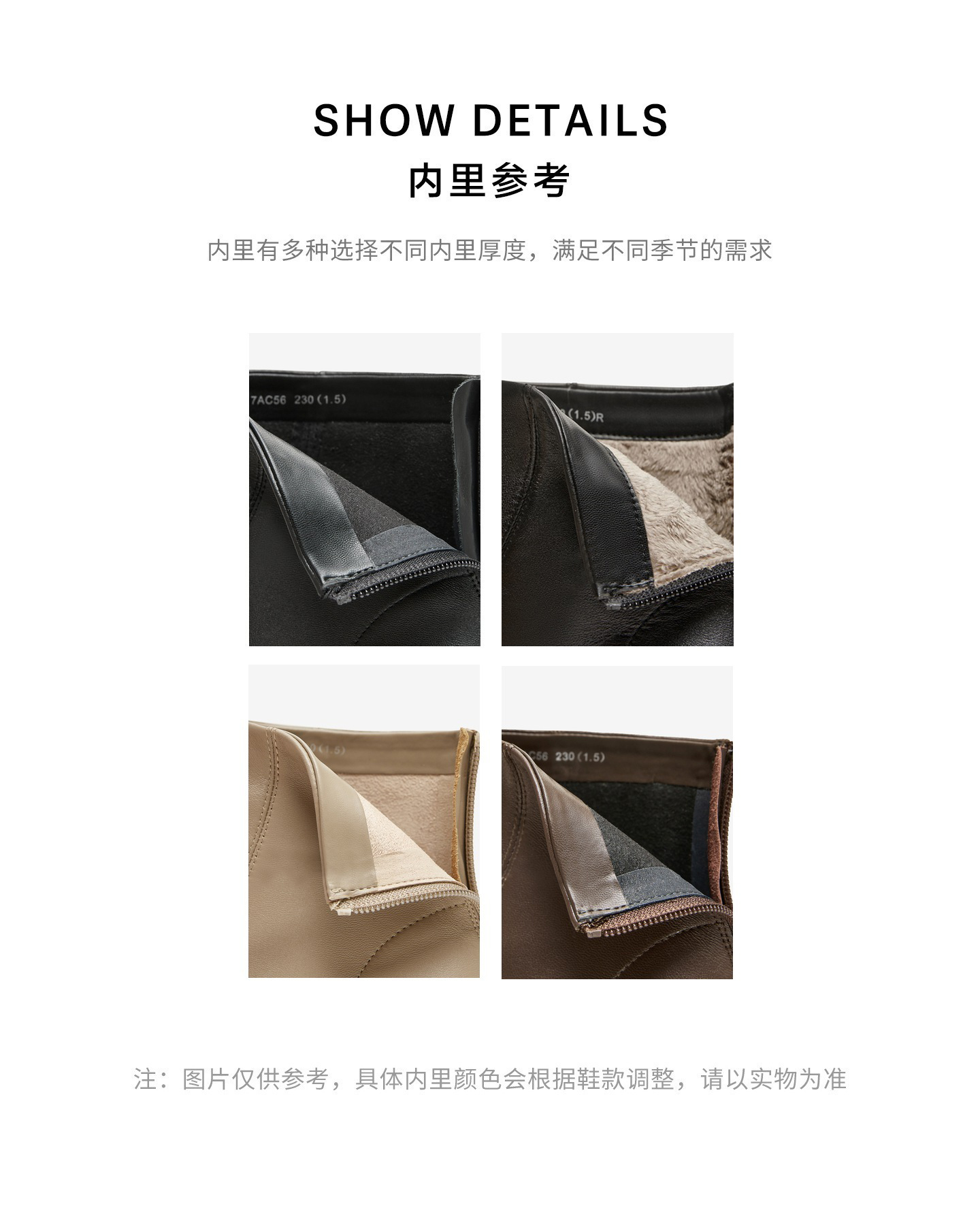 | 款式季节:冬季 | 前掌高度:1CM | 皮质特征:软面皮 | 防水台高度:无 |