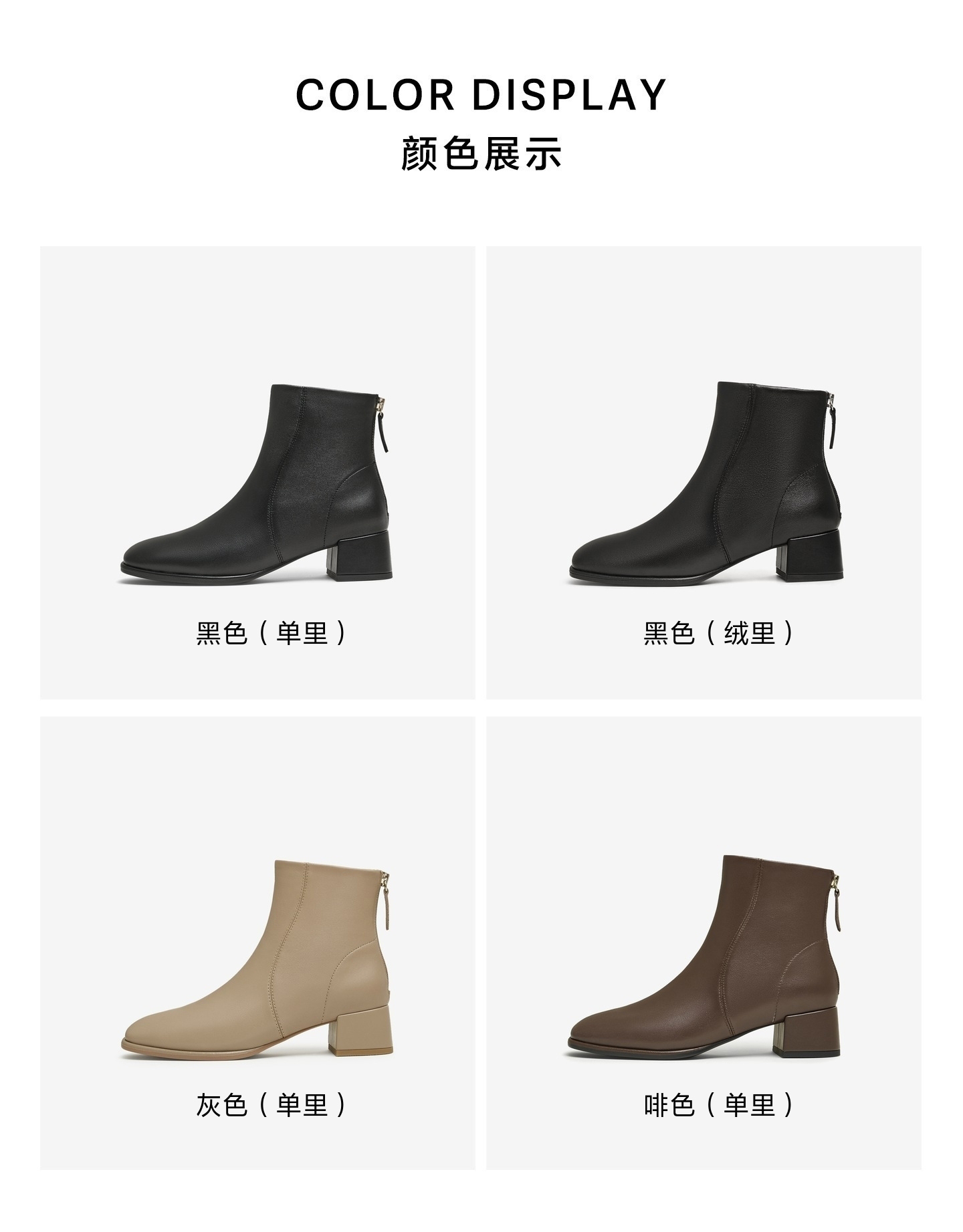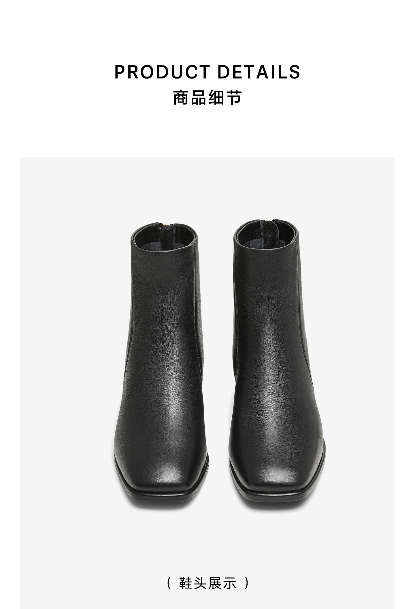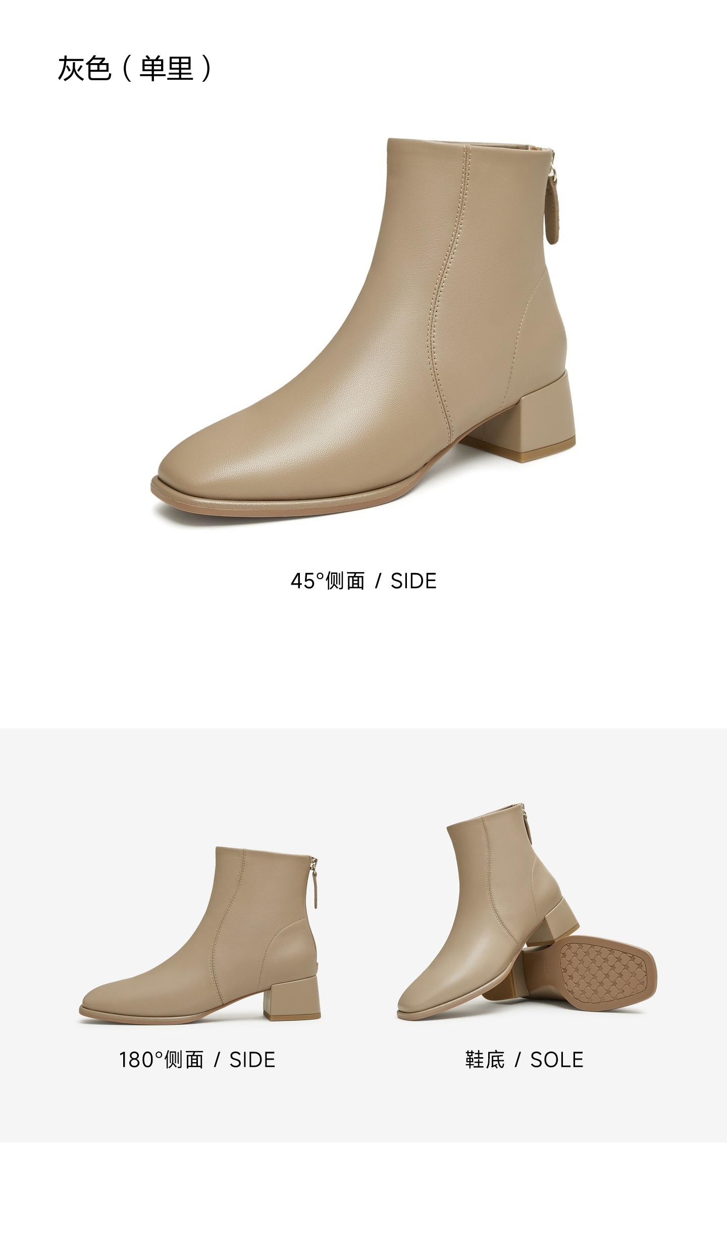 | 鞋底材质:TPU | 靴筒内里材质:织物面料 | 内增高:无 | 鞋面材质:羊皮革 | 闭合方式:后拉链 |