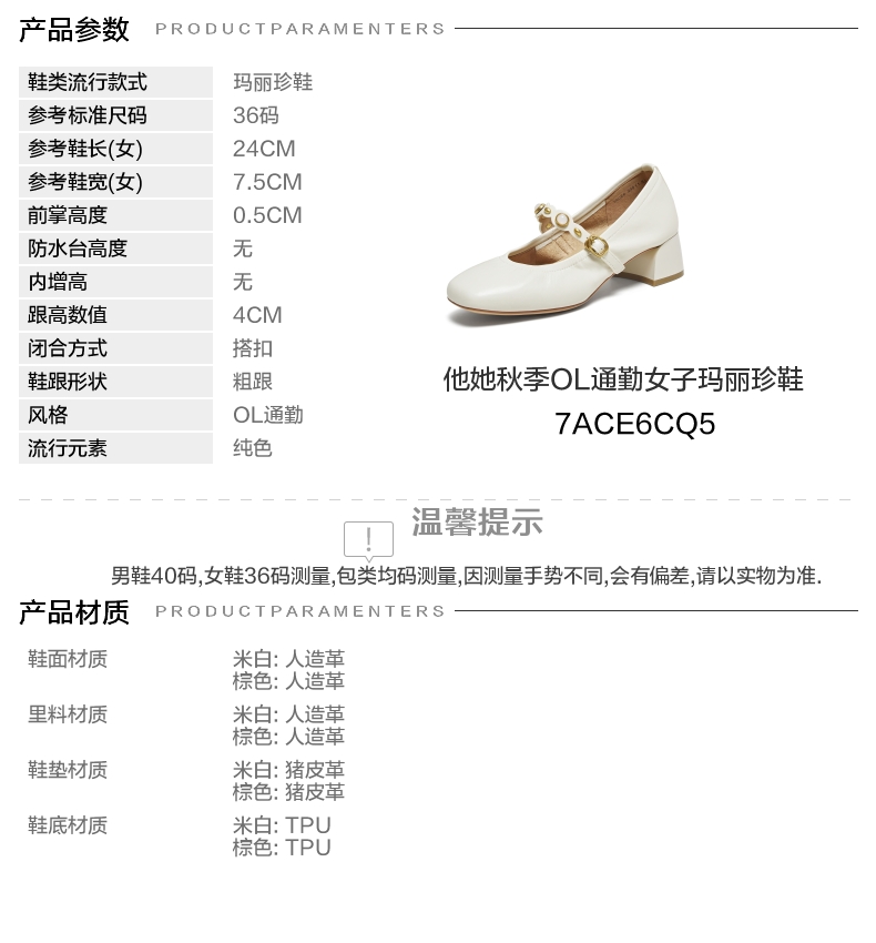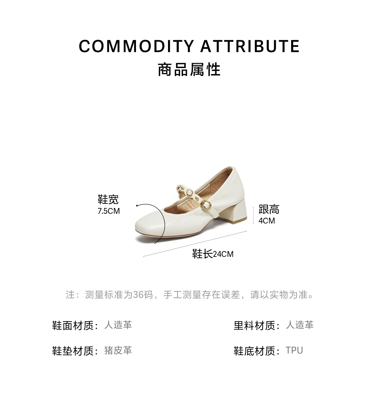 | 风格:OL通勤 | 跟高数值:4CM | 色系:米白 | 配跟:有 | 性别:女子 |