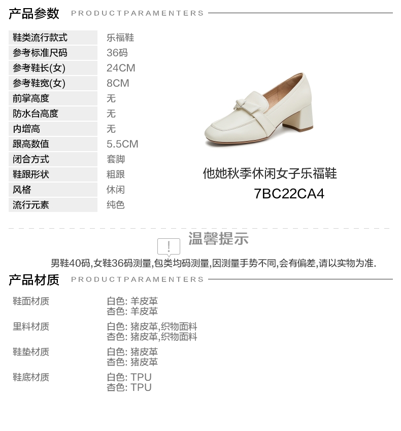 | 配跟:有 | 上市时间:2024年秋季 | 鞋类流行款式:乐福鞋 | 鞋头款式:圆头 | 鞋面图案:纯色 |