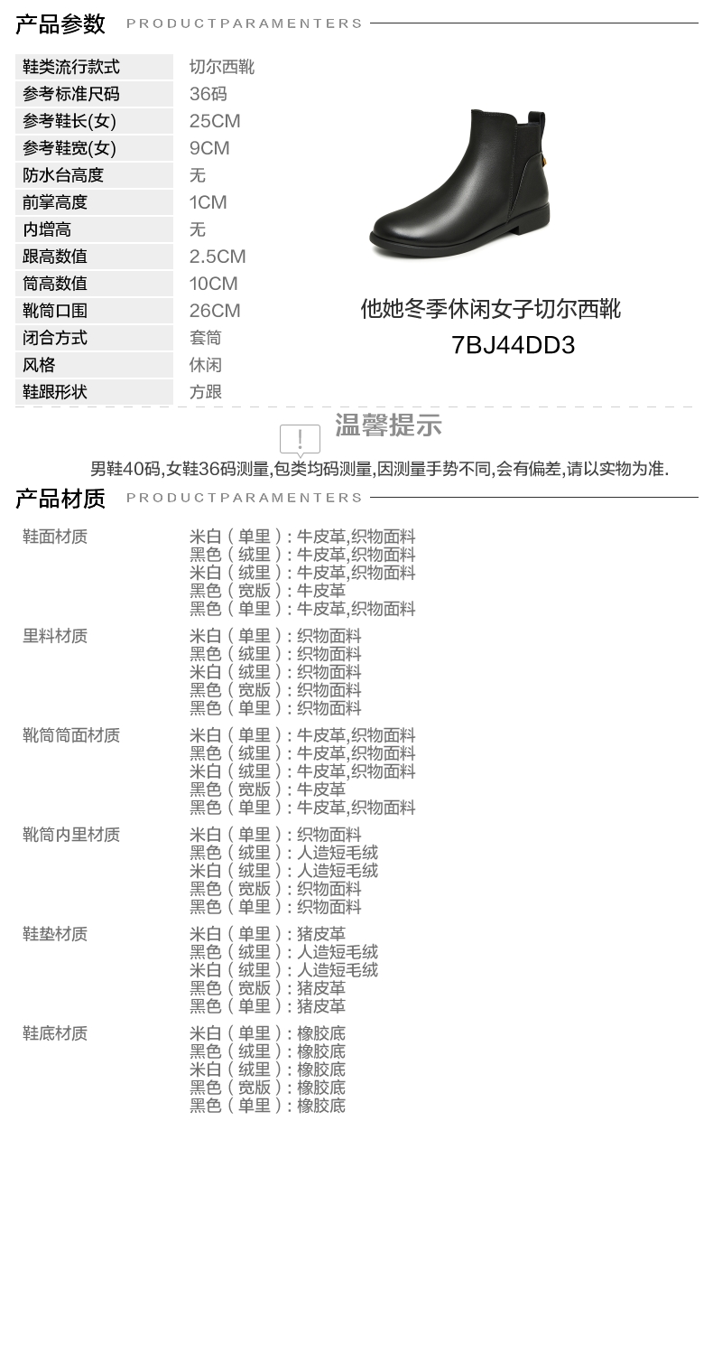 | 靴筒口围:26CM | 风格分类:切尔西靴 | 上市时间:2023年冬季 | 生产/经销/进口厂家:丽荣鞋业(深圳)有限公司 | 鞋类流行款式:切尔西靴 |