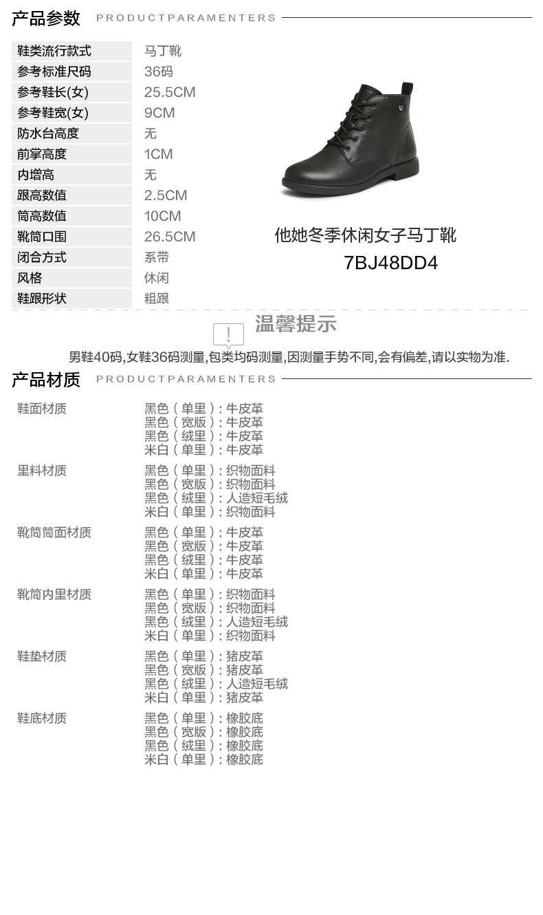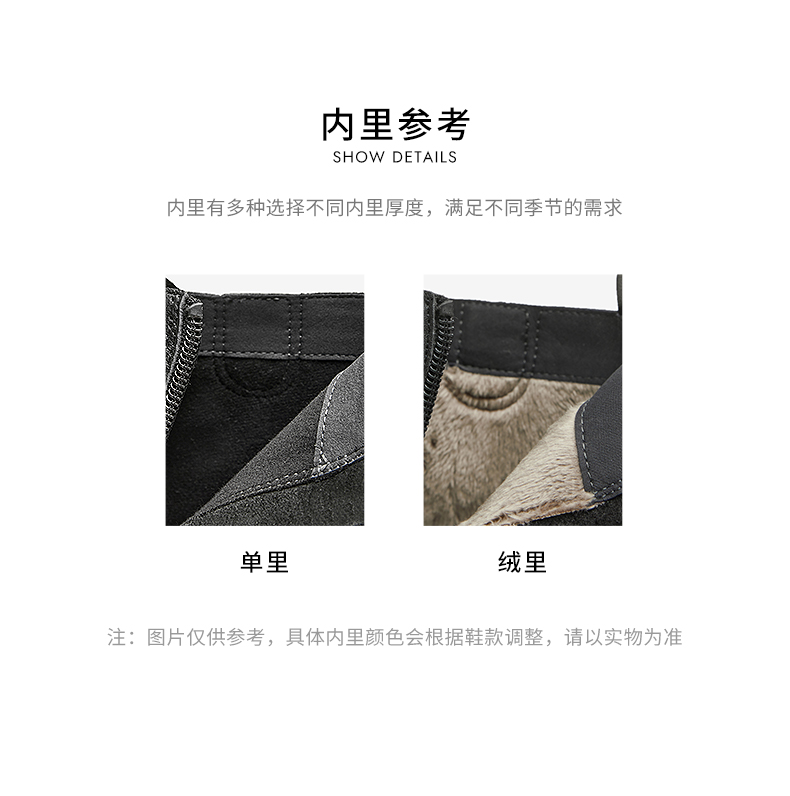 | 鞋底材质:橡胶底 | 靴筒内里材质:人造短毛绒 | 内增高:无 | 鞋面材质:牛皮革 | 适用场合:日常休闲 |
