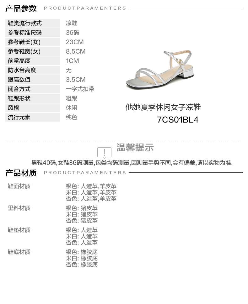 | 鞋头款式:露趾 | 执行标准:皮凉鞋GB/T22756-2017 | 跟高范围:中跟鞋(3-5CM) | 鞋面图案:纯色 | 鞋跟形状:粗跟 |