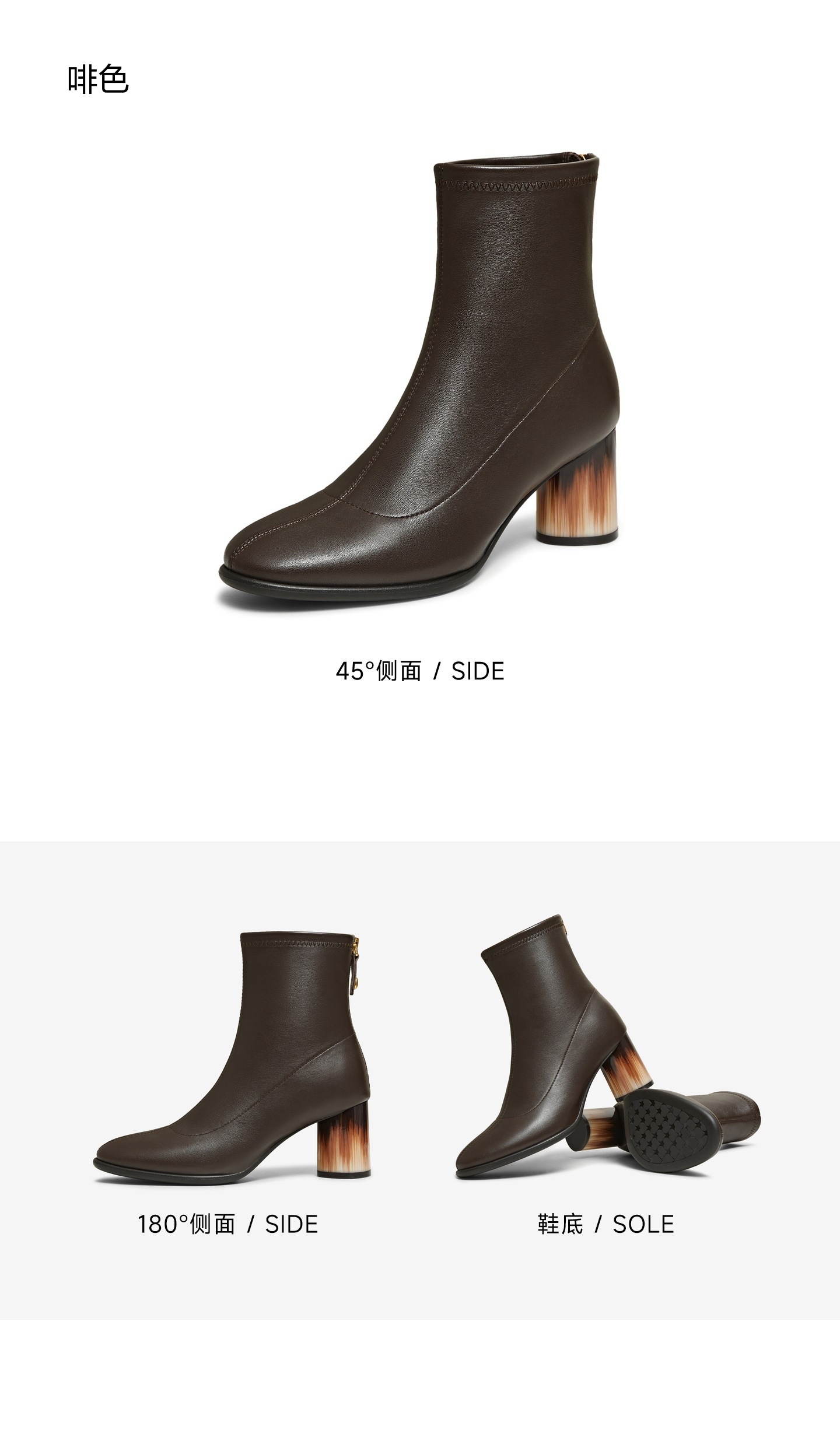 | 鞋底材质:TPU | 靴筒内里材质:人造革织物面料 | 内增高:无 | 鞋面材质:羊皮革 | 闭合方式:后拉链 |