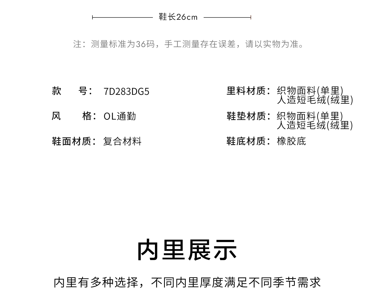 | 款式季节:冬季 | 前掌高度:3CM | 皮质特征:软面皮 | 防水台高度:无 |