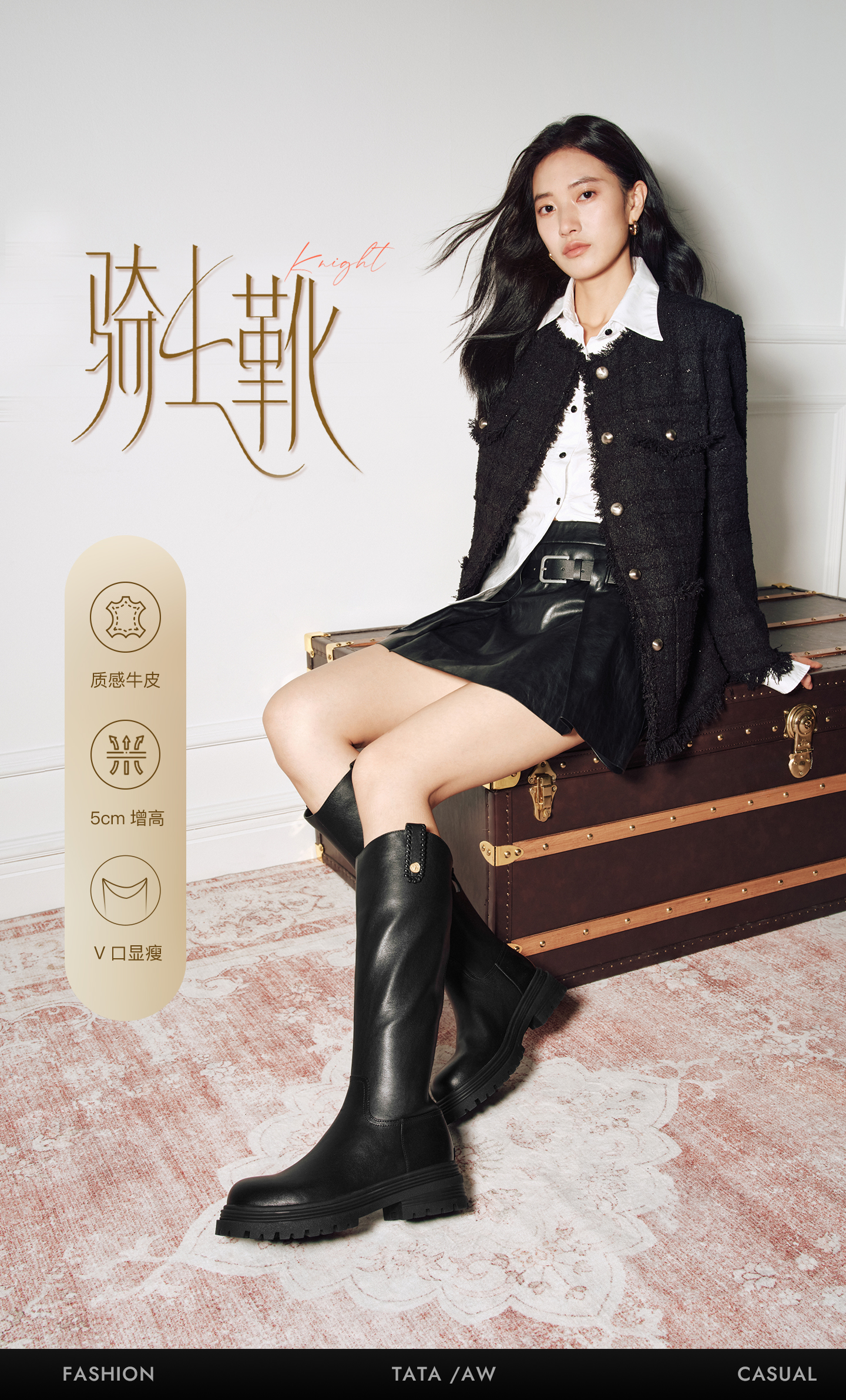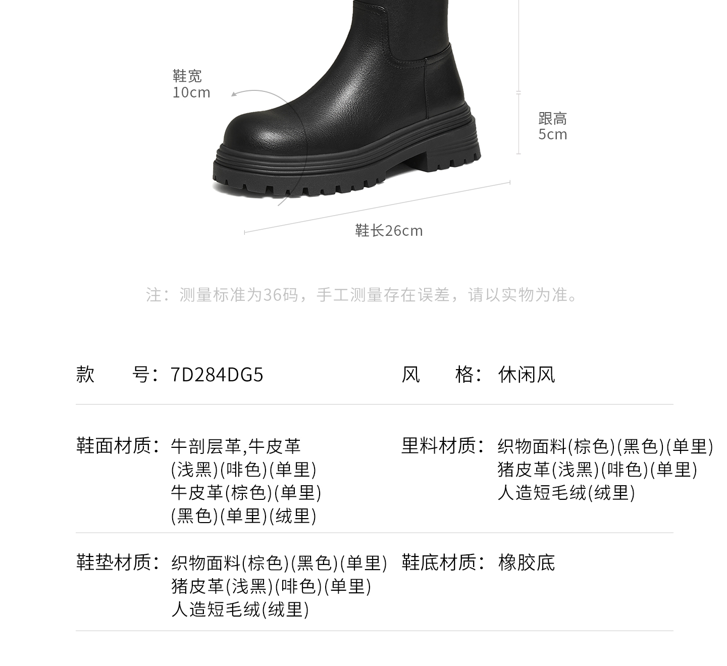 | 风格:休闲 | 色系:黑色 | 跟高数值:5CM | 性别:女子 | 筒高数值:41CM |