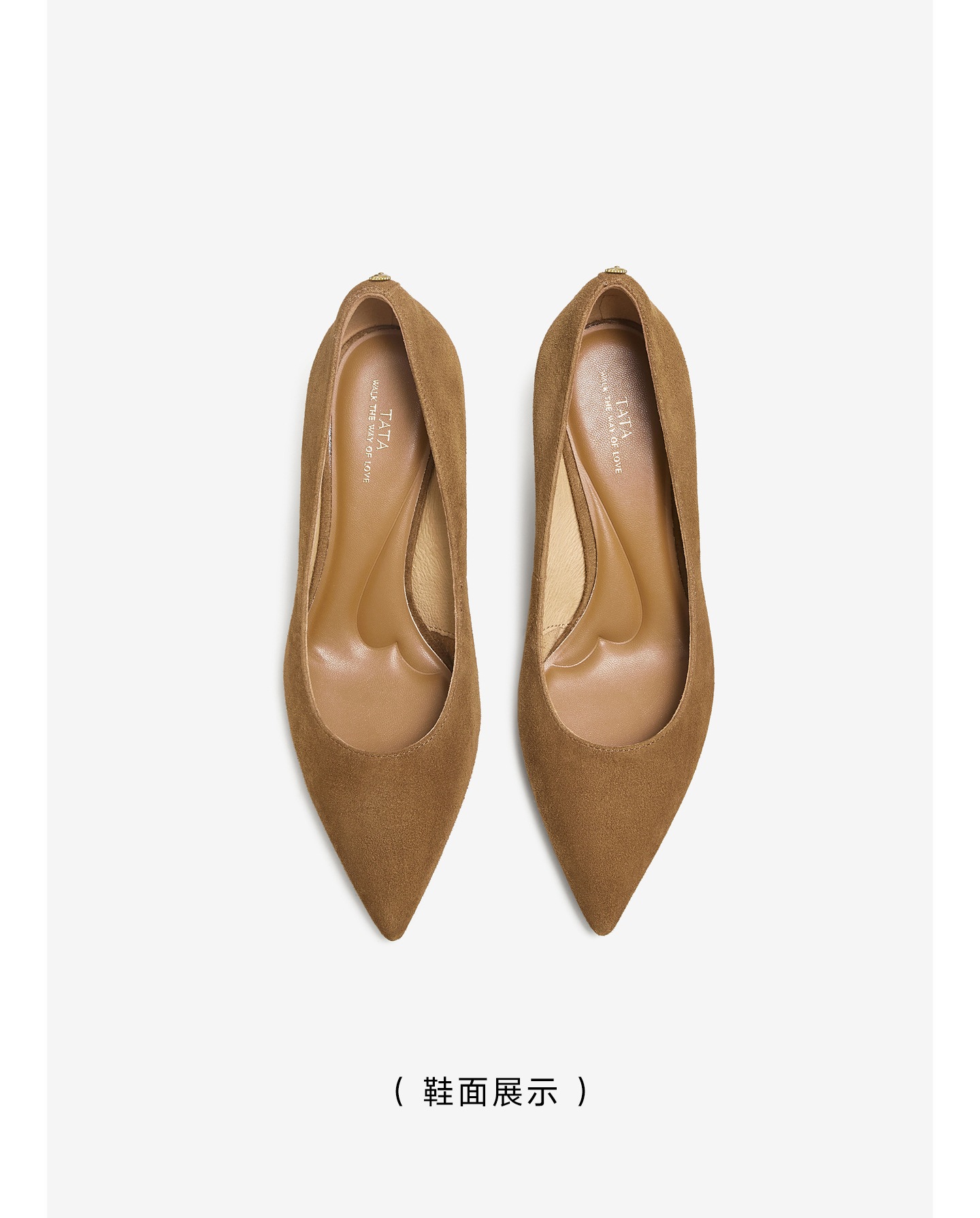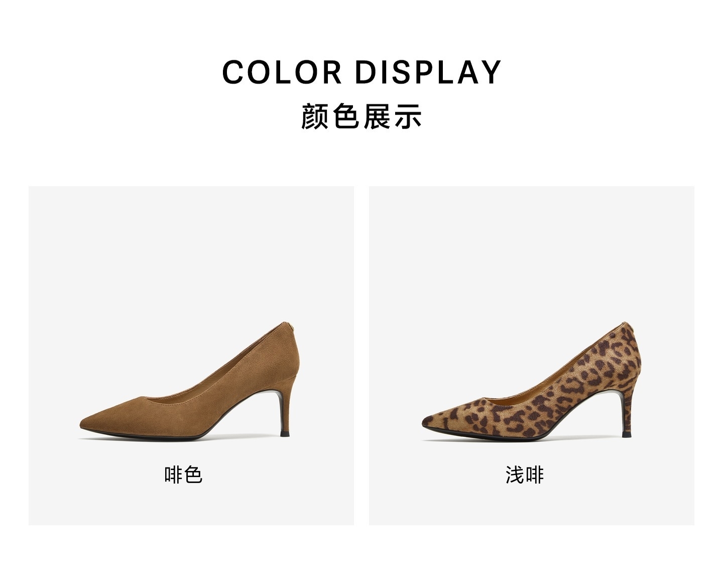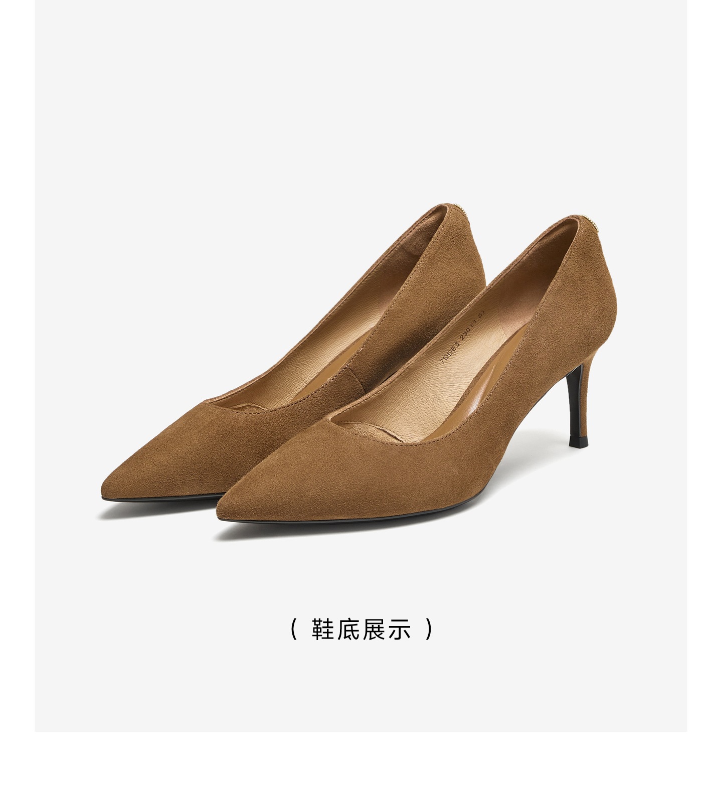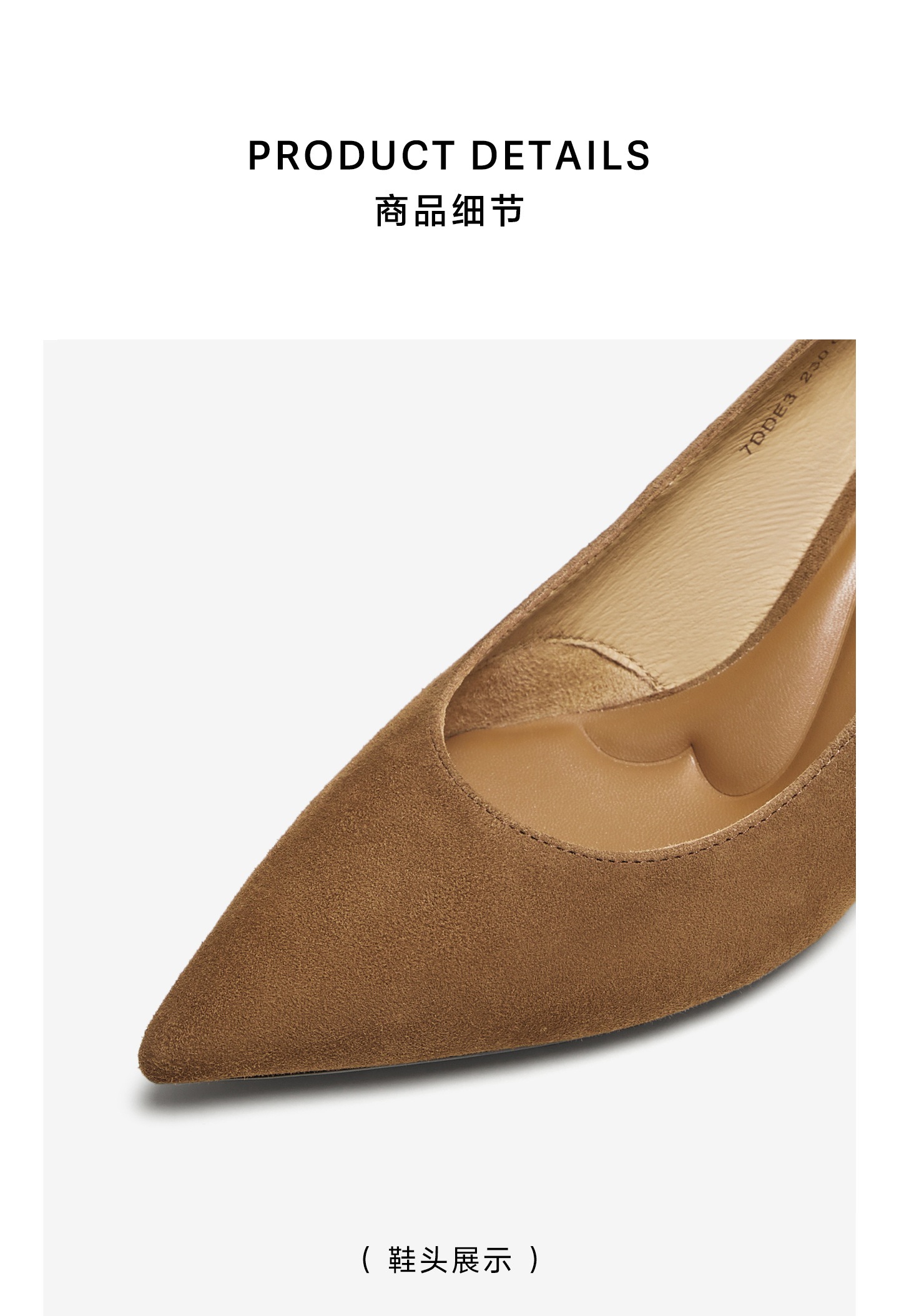 | 鞋头款式:尖头 | 鞋底材质:橡胶底 | 鞋面图案:纯色 | 内增高:无 | 鞋跟形状:细跟 |