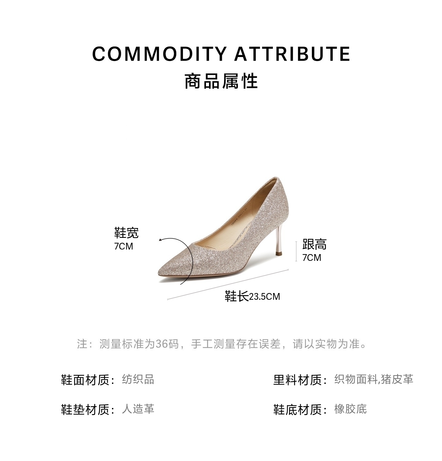 | 鞋头款式:尖头 | 鞋底材质:橡胶底 | 鞋面图案:纯色 | 内增高:无 | 鞋跟形状:细跟 |
