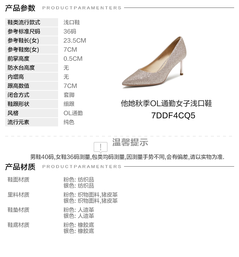 | 风格:OL通勤 | 跟高数值:7CM | 色系:粉色 | 配跟:有 | 性别:女子 |