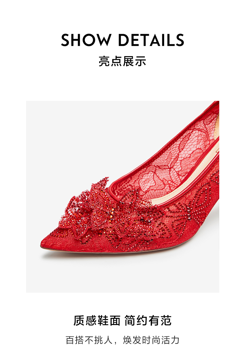 | 鞋头款式:尖头 | 鞋底材质:橡胶底 | 鞋面图案:纯色 | 内增高:无 | 鞋跟形状:细跟 |