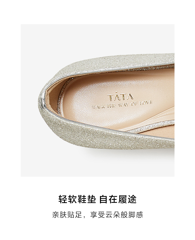 他她(Tata),品牌成立于2003年,致力为都市年轻人群提供时尚潮流、具有性价比的鞋履产品。十五年来“踏踏”的着地声,寓意都市白领元气满满的生活,如时尚“伴履”的TATA一直陪伴左右、伴随走出TATA的时尚步伐。2017年TATA美丽蜕变,TATA STAR元素的加入预示品牌将成为闪亮、前端的时尚鞋履品牌。