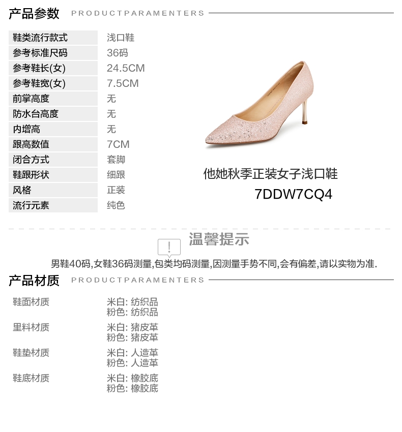 | 风格:正装 | 跟高数值:7CM | 色系:米白 | 配跟:有 | 性别:女子 |