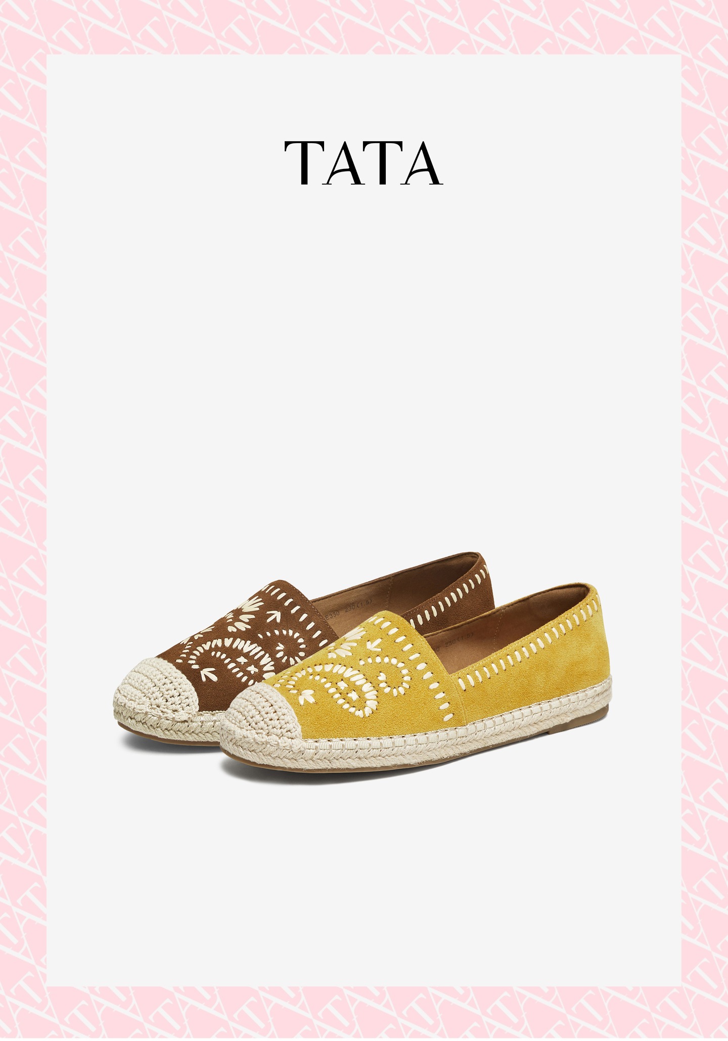 他她(Tata),品牌成立于2003年,致力为都市年轻人群提供时尚潮流、具有性价比的鞋履产品。十五年来“踏踏”的着地声,寓意都市白领元气满满的生活,如时尚“伴履”的TATA一直陪伴左右、伴随走出TATA的时尚步伐。2017年TATA美丽蜕变,TATA STAR元素的加入预示品牌将成为闪亮、前端的时尚鞋履品牌。