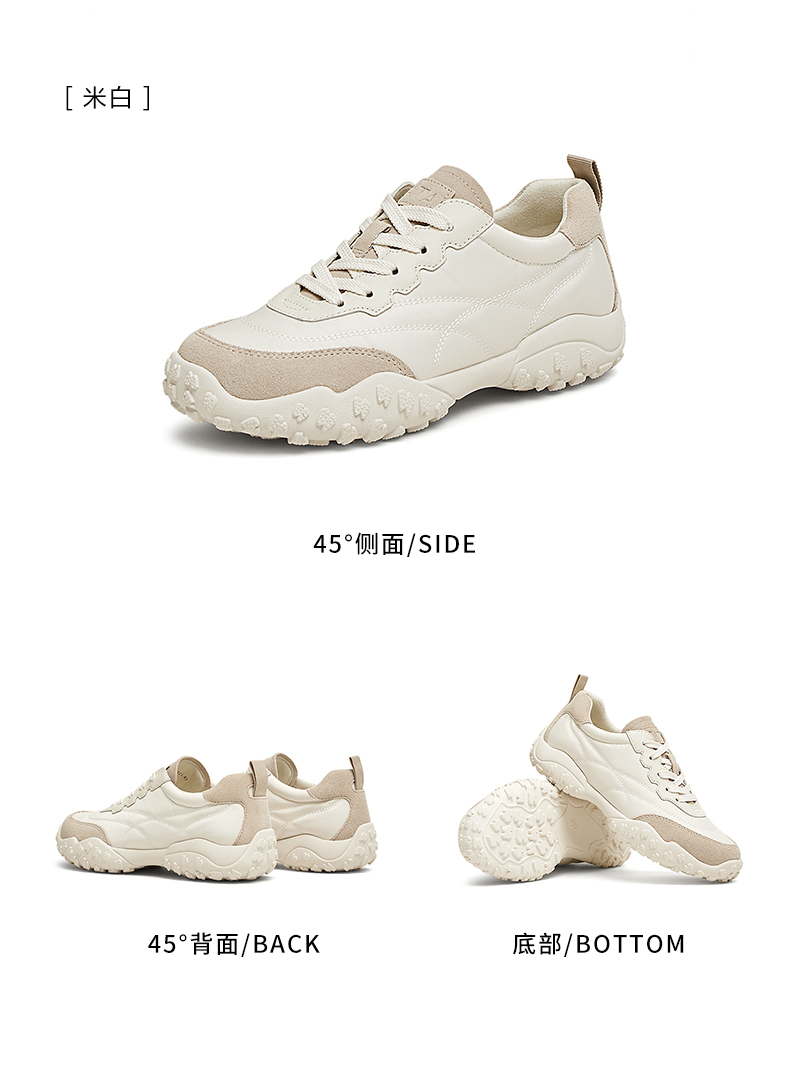 | 色系:米白 | 跟高数值:3.5CM | 性别:女子 | 里料材质:织物面料 | 制鞋工艺:胶贴皮鞋 |