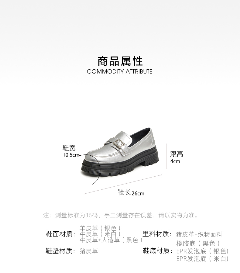 | 参考鞋长(女):26CM | 参考鞋宽(女):10.5CM | 风格:时尚休闲 | 色系:银色 | 参考标准尺码:36码 |