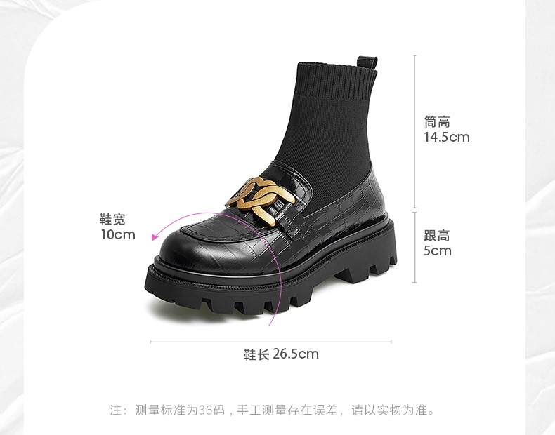 | 配跟:有 | 靴筒口围:22CM | 上市时间:2021年冬季 | 鞋类流行款式:袜靴 | 鞋头款式:圆头 |