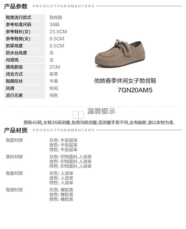 | 鞋帮:低帮 | 鞋底材质:橡胶底 | 内增高:无 | 鞋面材质:牛剖层革 | 适用场合:日常休闲 |