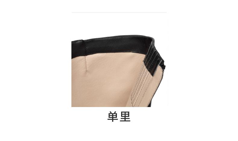 | 鞋底材质:橡胶底 | 靴筒内里材质:头层猪皮革 | 内增高:无 | 鞋面材质:牛皮革 | 闭合方式:侧拉链 |
