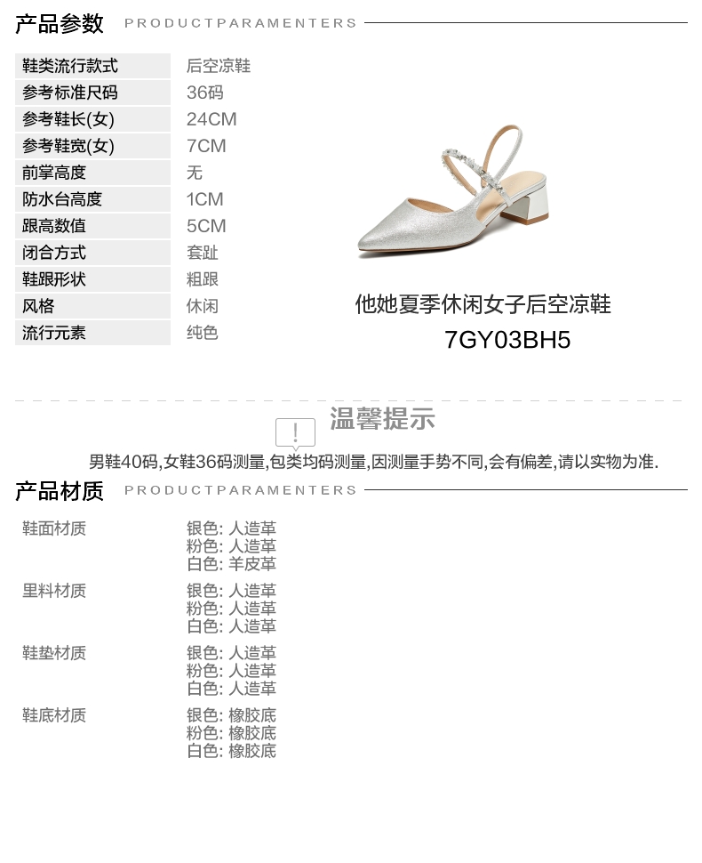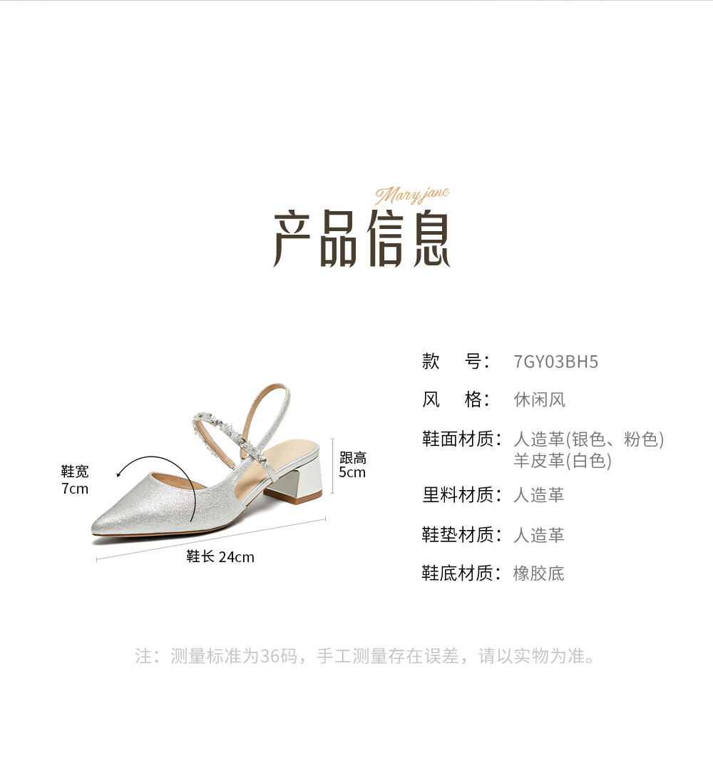 | 鞋头款式:尖头 | 执行标准:皮凉鞋GB/T22756-2017 | 跟高范围:中跟鞋(3-5CM) | 鞋面图案:纯色 | 鞋跟形状:粗跟 |
