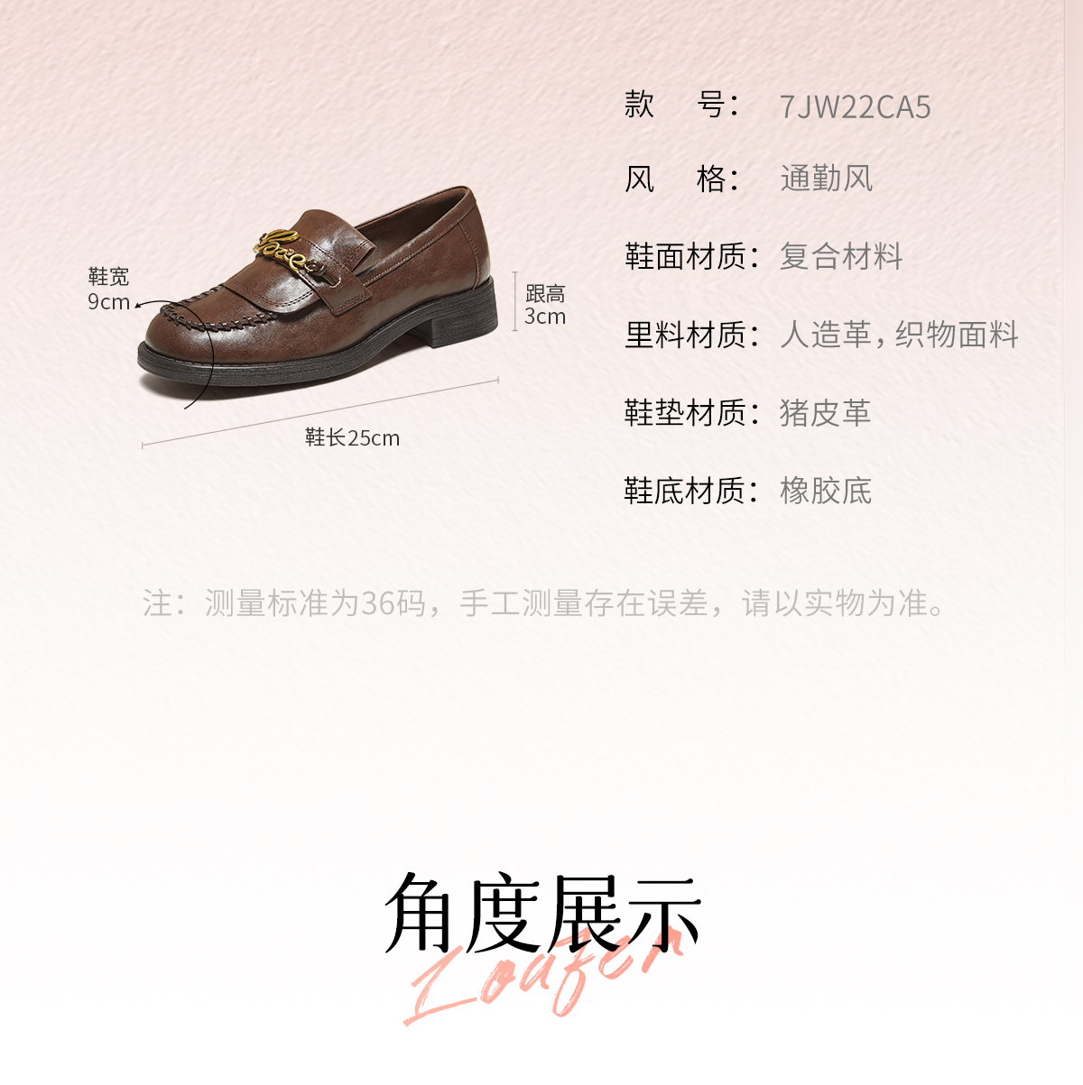 | 配跟:有 | 上市时间:2025年秋季 | 鞋类流行款式:乐福鞋 | 鞋头款式:圆头 | 鞋面图案:纯色 |