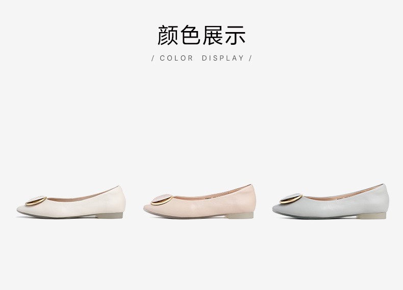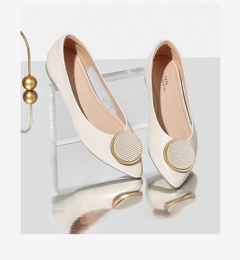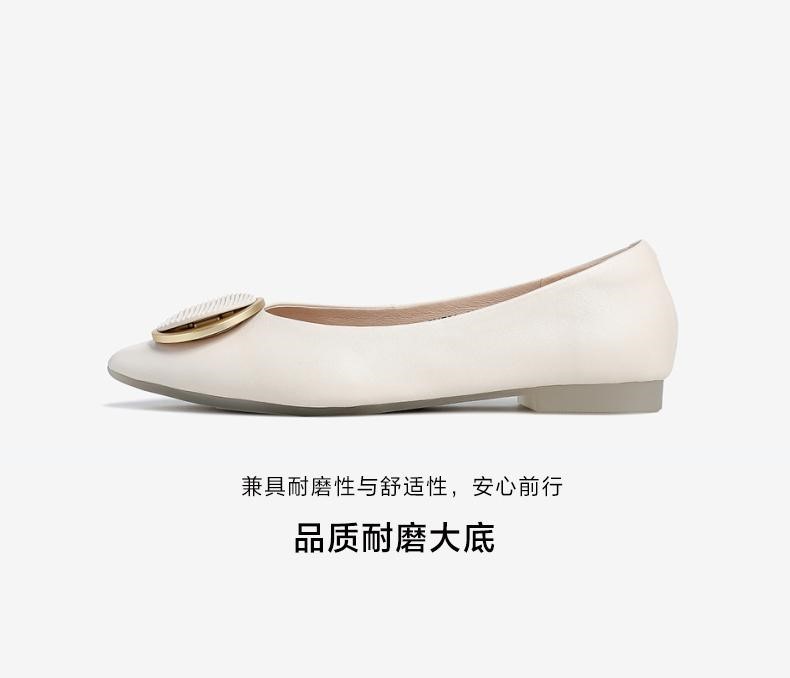 | 色系:米色 | 跟高数值:1CM | 性别:女子 | 里料材质:猪皮革 | 制鞋工艺:胶贴皮鞋 |