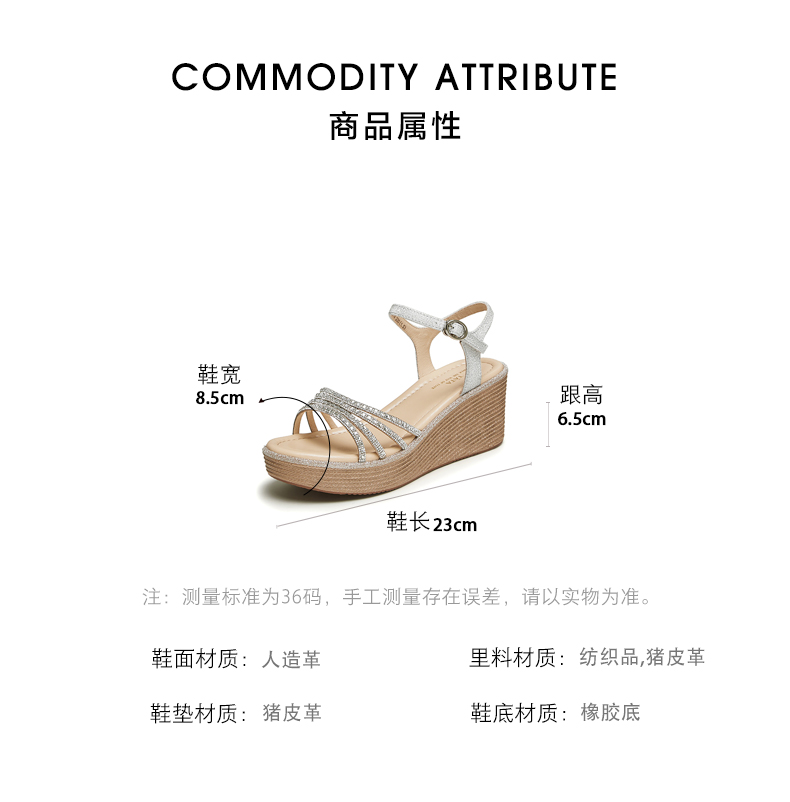 | 鞋头款式:露趾 | 执行标准:皮凉鞋GB/T22756-2017 | 跟高范围:高跟鞋(6-8CM) | 鞋面图案:纯色 | 鞋跟形状:坡跟 |
