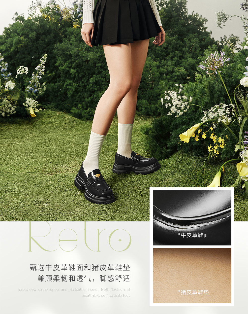 | 配跟:有 | 上市时间:2025年春季 | 鞋类流行款式:乐福鞋 | 鞋头款式:圆头 | 鞋面图案:纯色 |