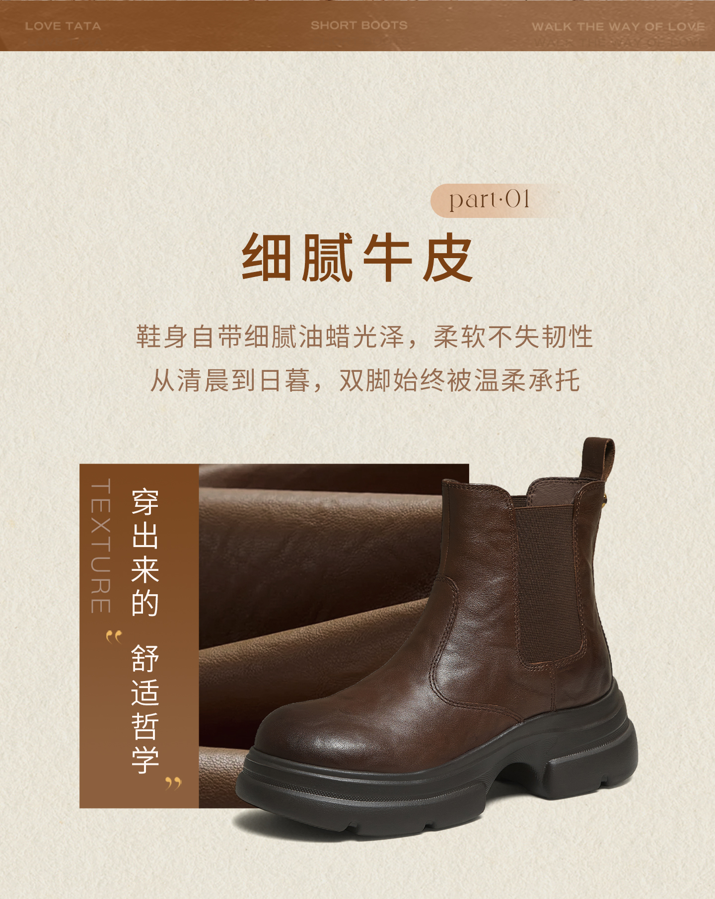 他她(Tata),品牌成立于2003年,致力为都市年轻人群提供时尚潮流、具有性价比的鞋履产品。十五年来“踏踏”的着地声,寓意都市白领元气满满的生活,如时尚“伴履”的TATA一直陪伴左右、伴随走出TATA的时尚步伐。2017年TATA美丽蜕变,TATA STAR元素的加入预示品牌将成为闪亮、前端的时尚鞋履品牌。