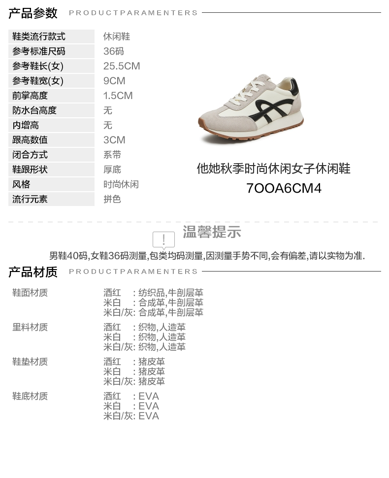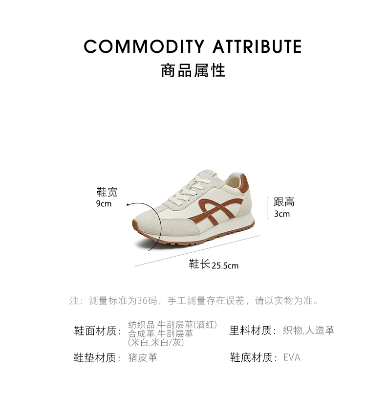 | 参考鞋长(女):25.5CM | 参考鞋宽(女):9CM | 风格:时尚休闲 | 年份:2024年 | 色系:米色 |