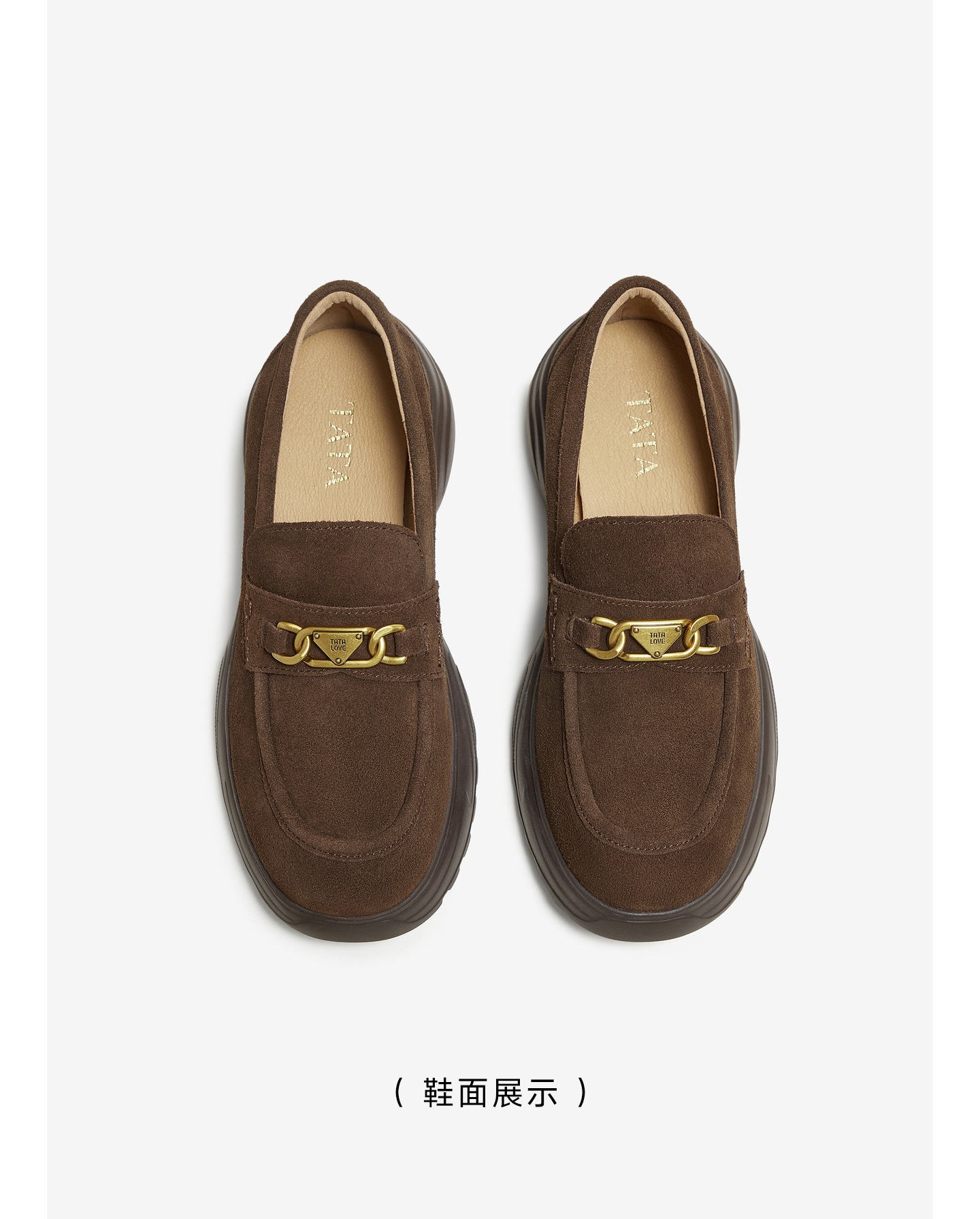 | 配跟:无 | 上市时间:2025年秋季 | 鞋类流行款式:乐福鞋 | 鞋头款式:圆头 | 鞋面图案:纯色 |